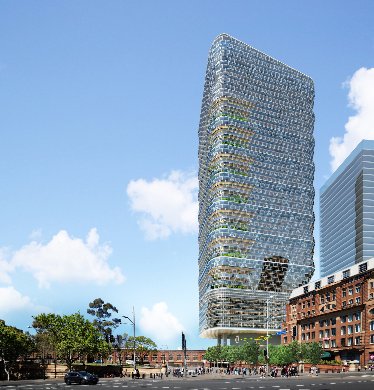 The project also restores a historic railway shed and the former YHA hostel at ground level. The design transforms this heritage structure into a public arrival space for the development. Above this base, the tower appears to float over the historic building. The lower levels will house a hotel, while the upper floors contain Atlassian’s workplaces. Rooftop terraces will provide additional outdoor spaces for occupants. As a result, the project strengthens the public realm around Sydney’s Central Station technology district.