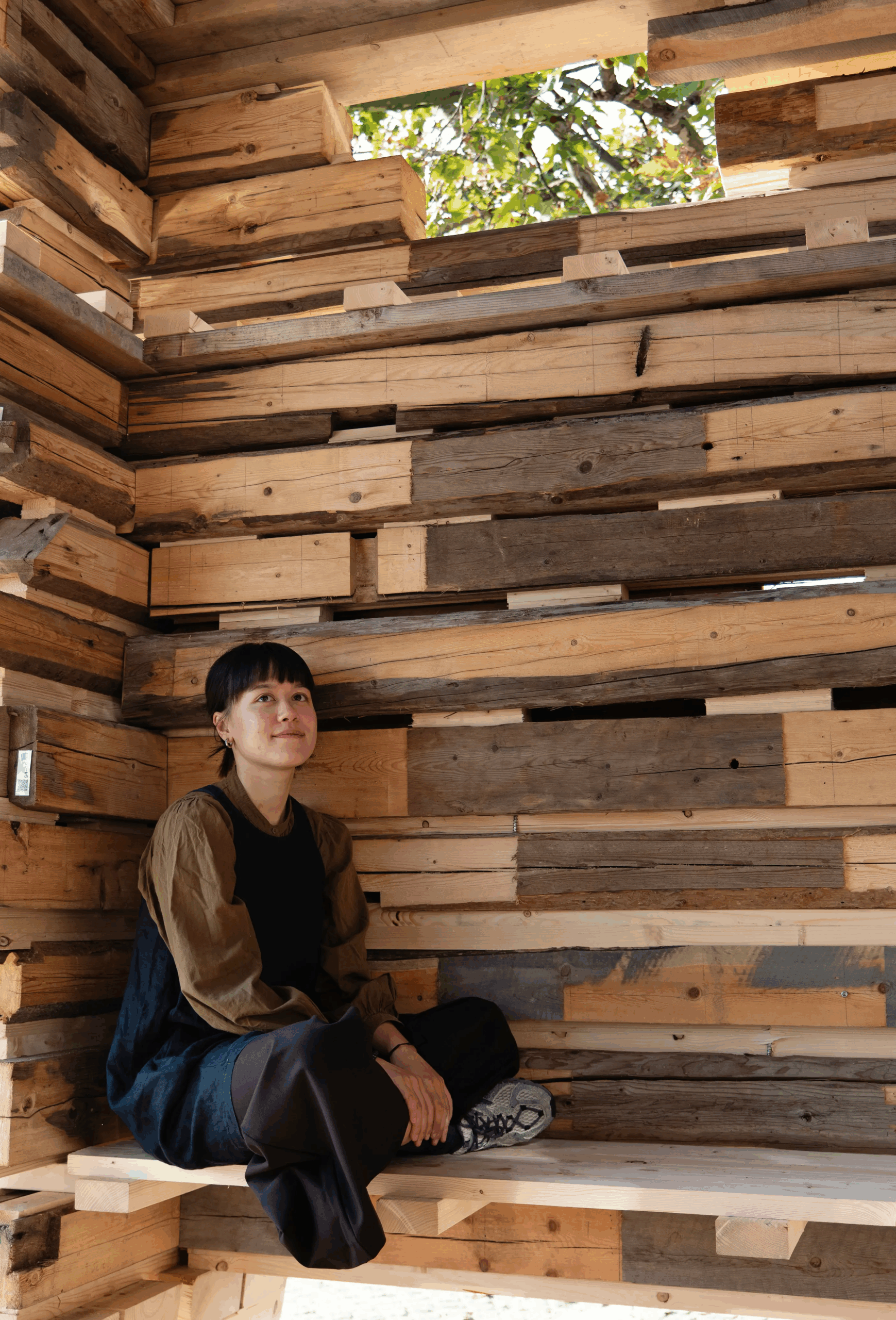 Through this design, traditional handcraft meets advanced digital fabrication. This creates a dialogue between past and future ways of building. For architects and designers, the pavilion shows how reclaimed wood can act as both a structural and expressive material. The interplay between patina-rich surfaces and digitally cut joints highlights the aesthetic and technical possibilities of circular timber design.