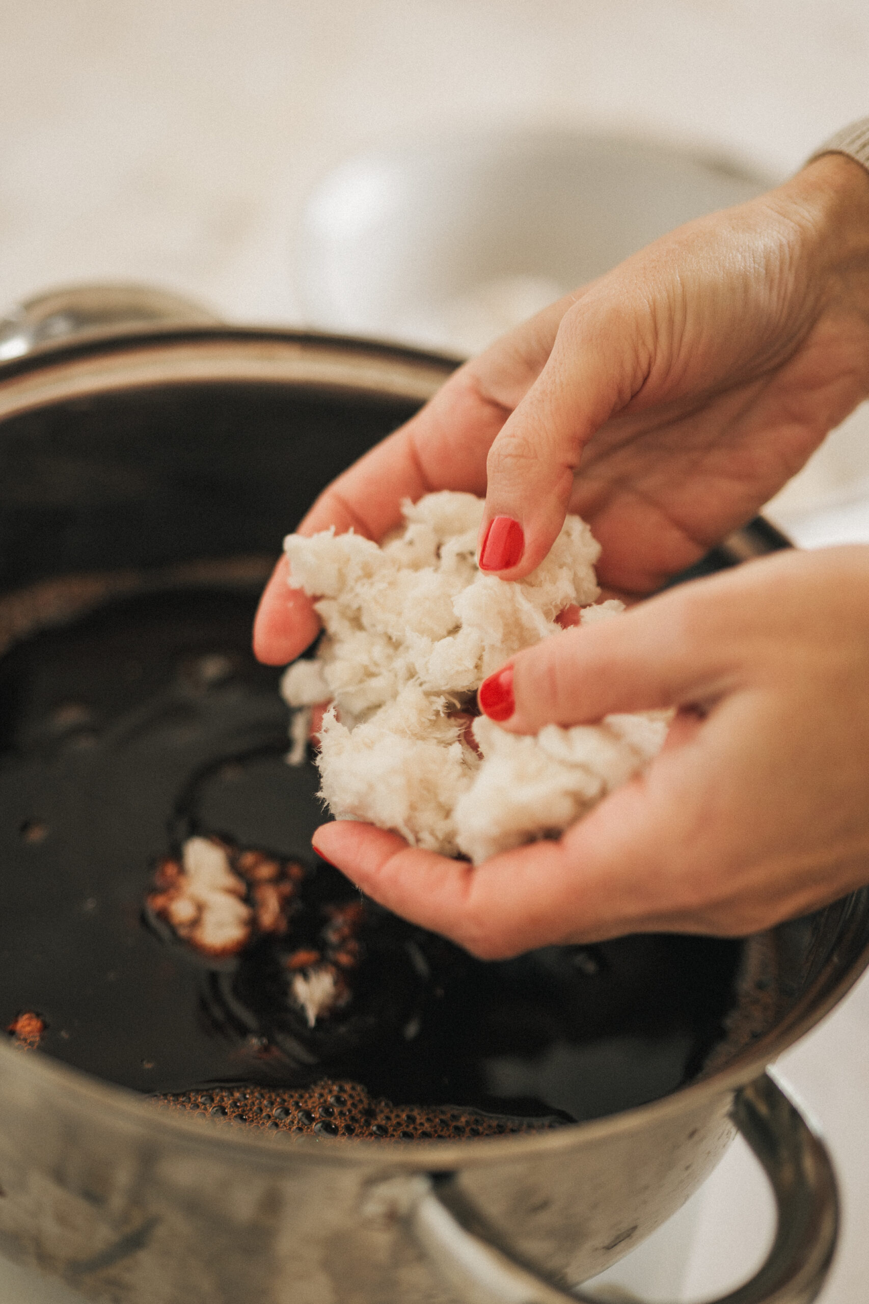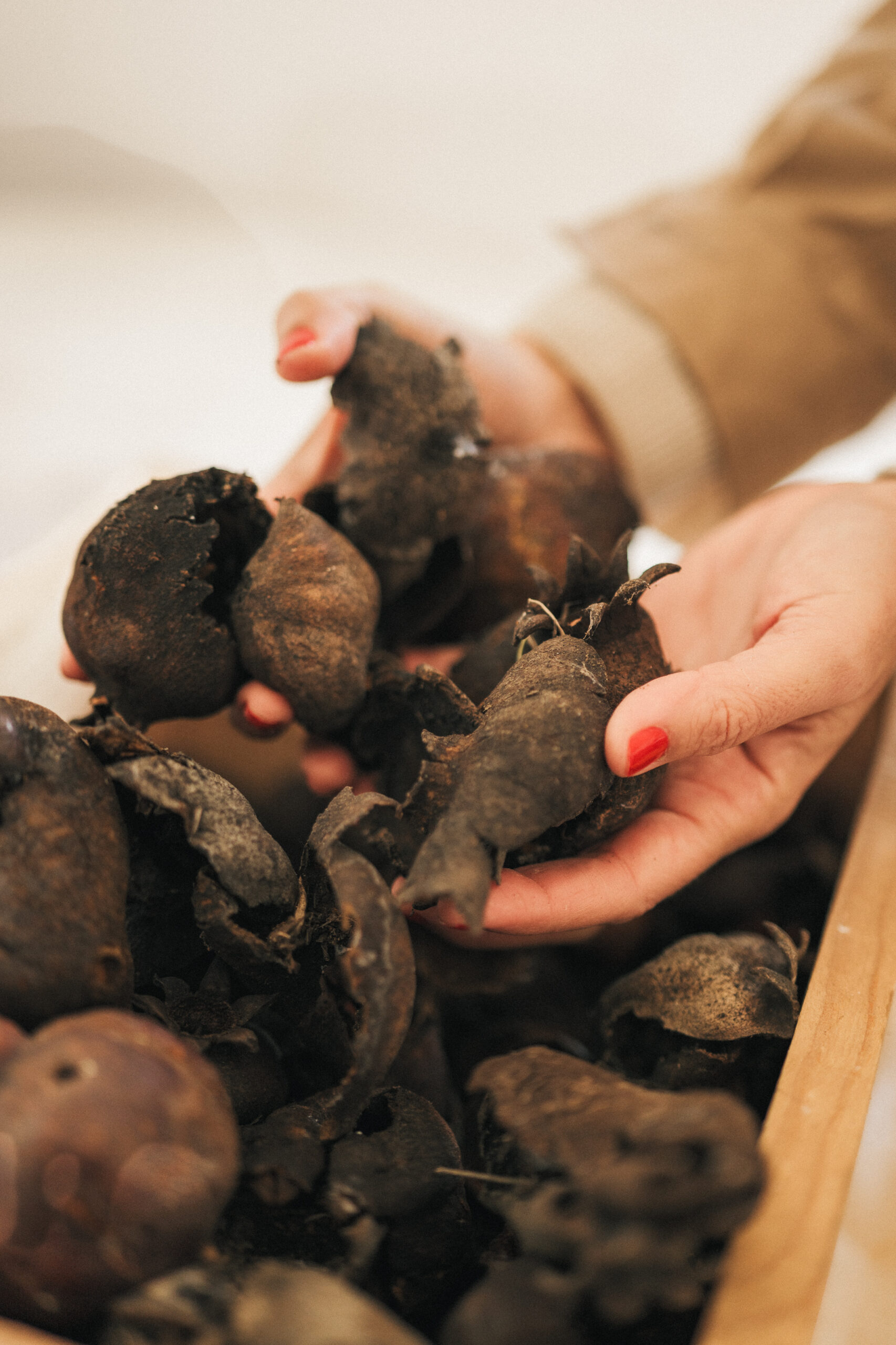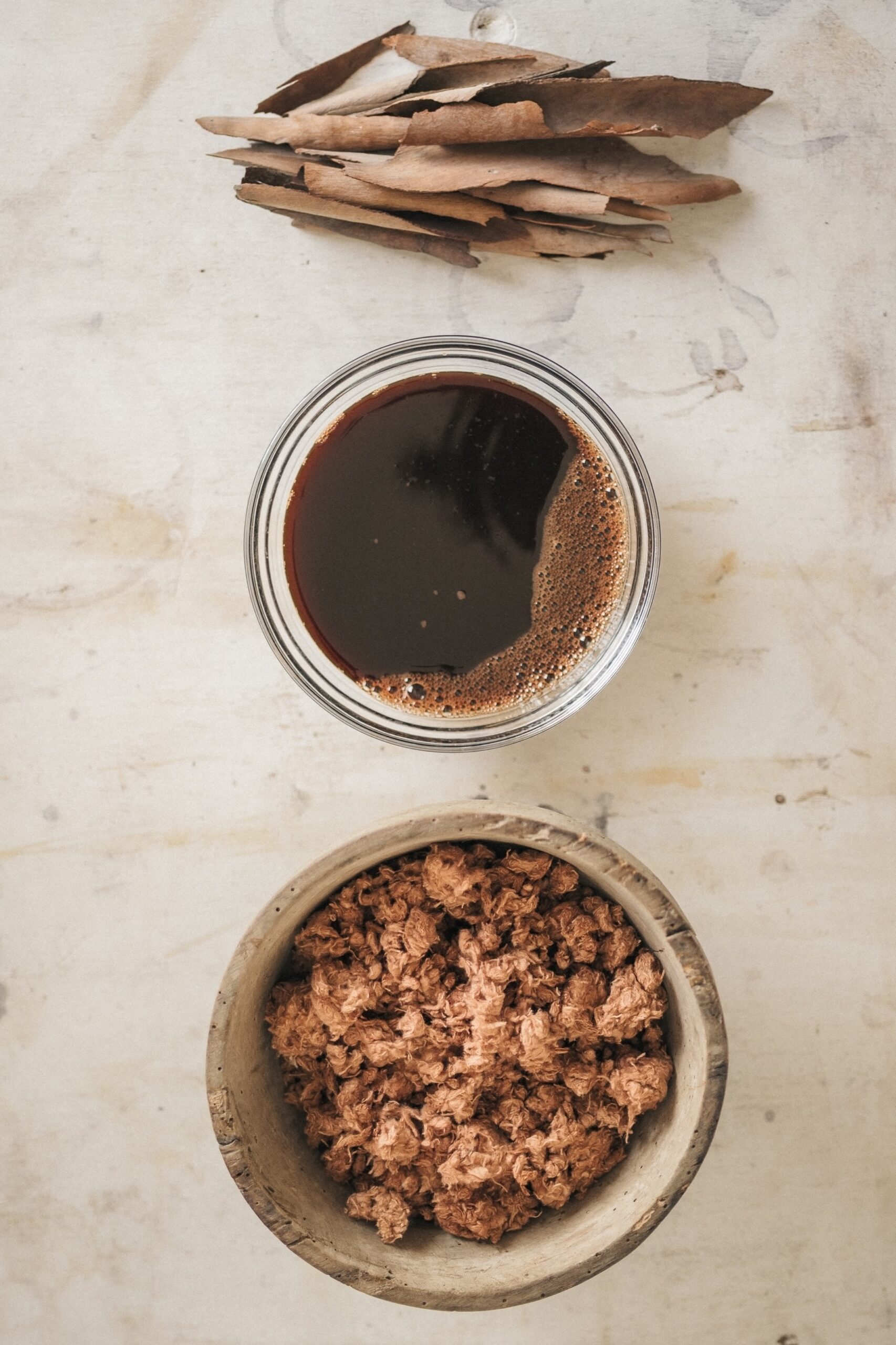 The natural dyeing process relies on renewable, biodegradable resources. It avoids synthetic chemicals and reduces environmental impact. Rather than aiming for perfect consistency, the process embraces variation, ageing and imperfection as material qualities.