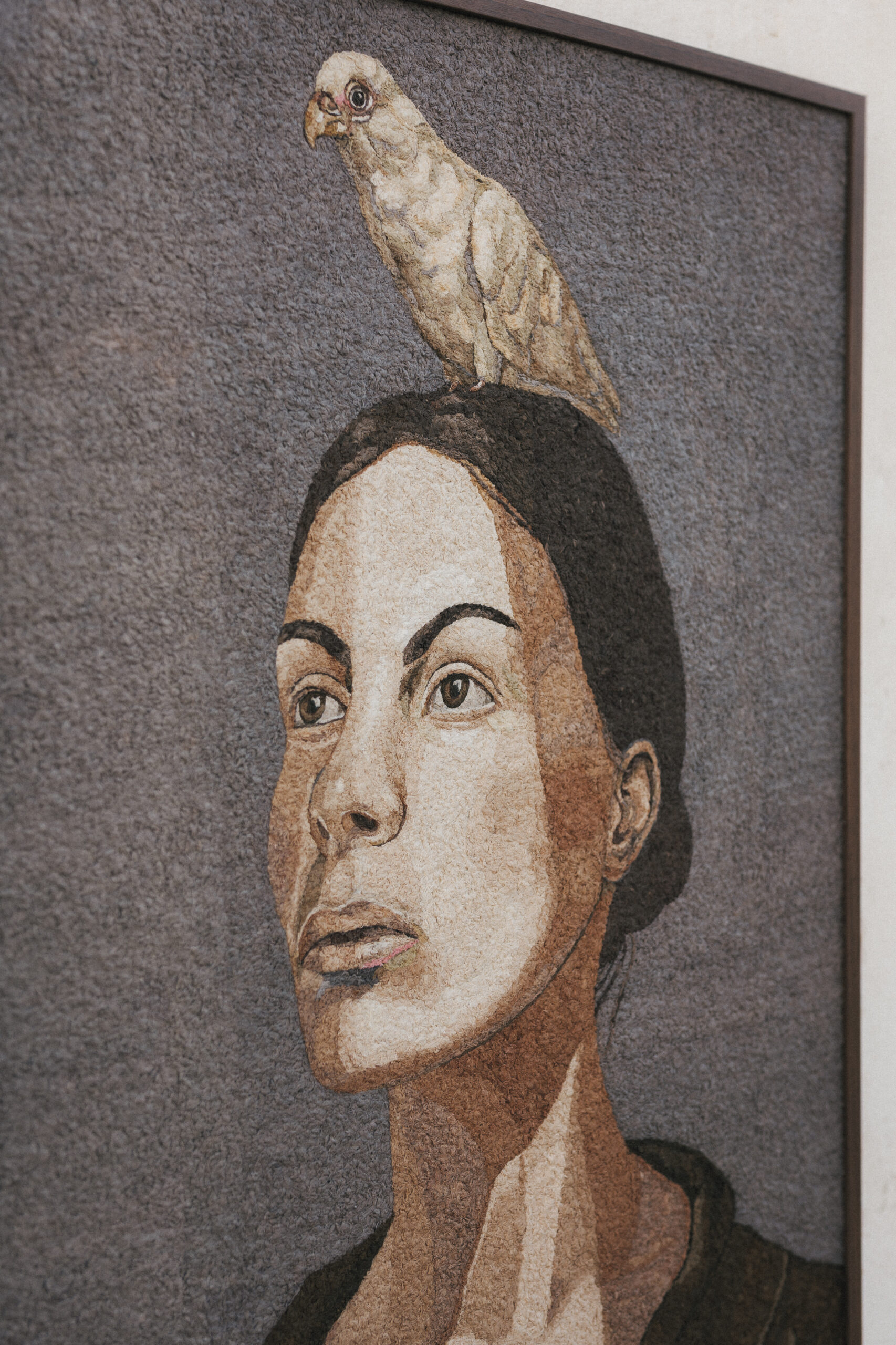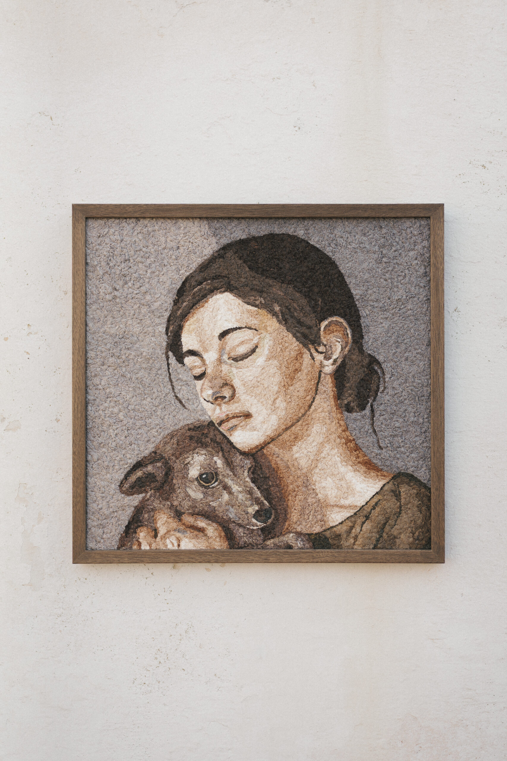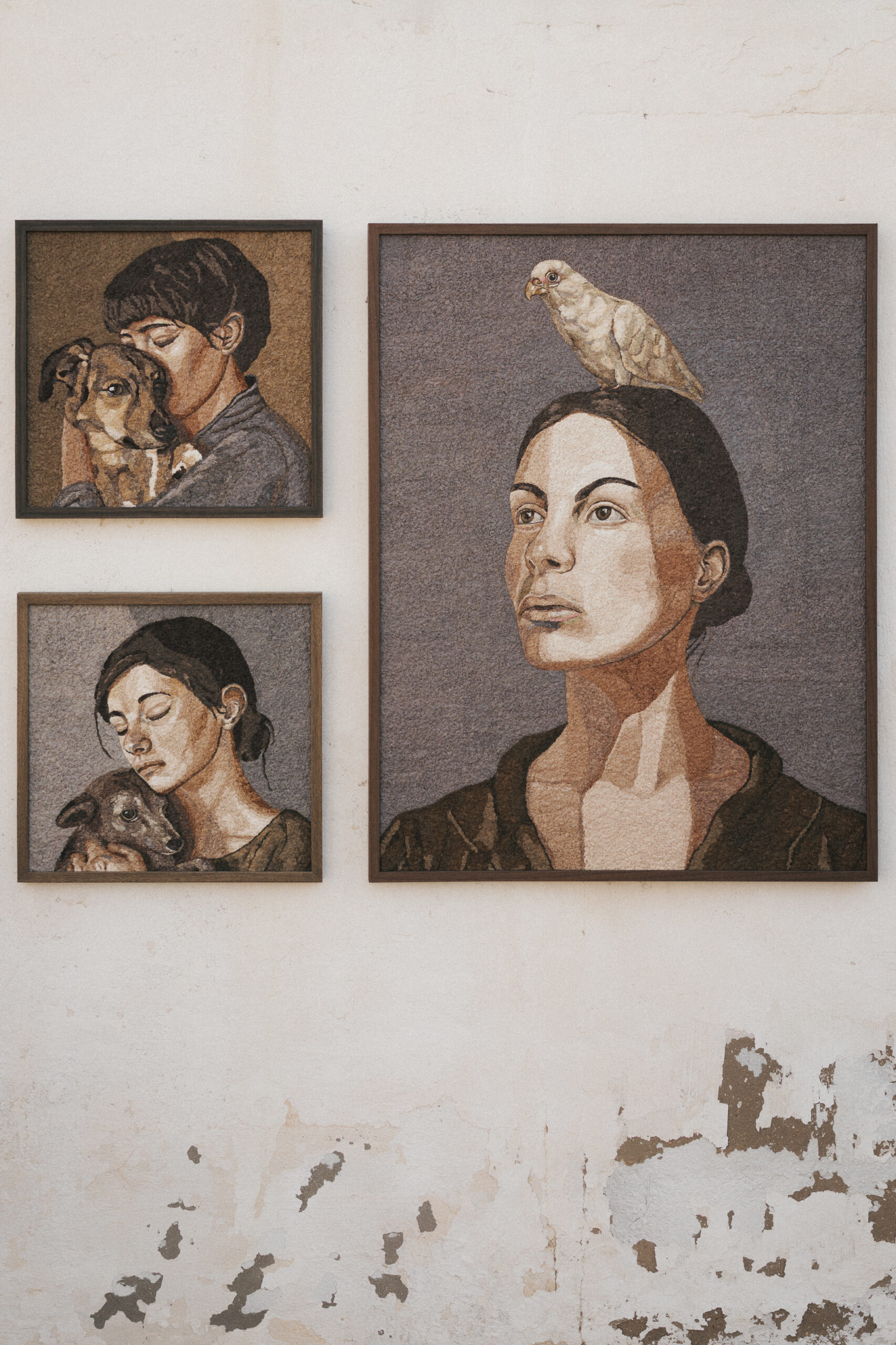 Her ongoing series We Are All Nature reflects this philosophy. The figurative works often feature animals as symbolic mirrors of human emotions and vulnerability. Through both material choice and imagery, the series highlights the connection between humans and the natural world.
