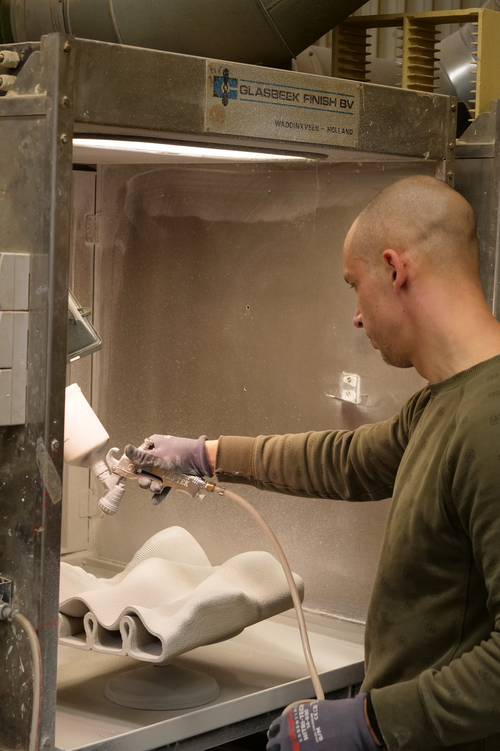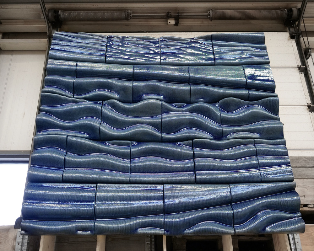 The tiles were fired and glazed in collaboration with Royal Tichelaar, a Dutch ceramics company known for centuries of expertise. Together, they created a durable and expressive surface that shows how ceramics can perform in contemporary architecture and interior spaces.