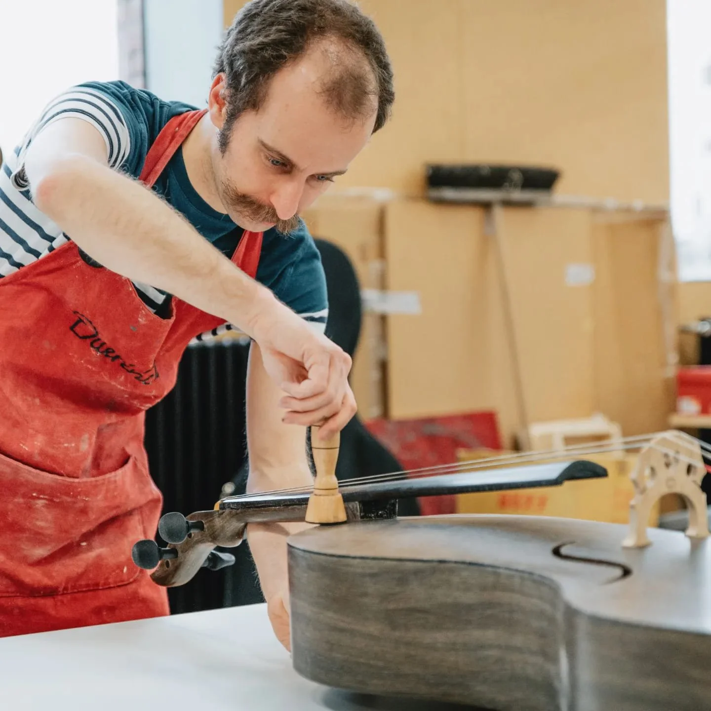 The Belgian start-up Atelier Duerinck produces string instruments such as cellos and violins using flax fibre composite rather than traditional tonewoods or carbon fibre. The initiative grew out of long-term research at HOGENT, KASK & Conservatorium and Ghent University, and focuses on alternative materials for acoustic instruments.