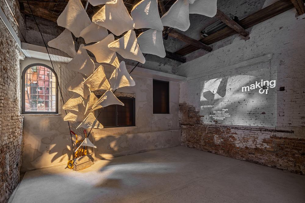 ‘Flight Into Shadow’ is a research-based installation that studies how light and shadow influence thermal comfort and spatial perception in heat-stressed urban environments. Deggendorf Institute of Technology developed the project together with HFT Stuttgart and the University of Stuttgart (IBK2). The installation was presented during the Venice Architecture Biennale 2025 as part of the Keep Cool! – Workshop for Cool Cities programme.