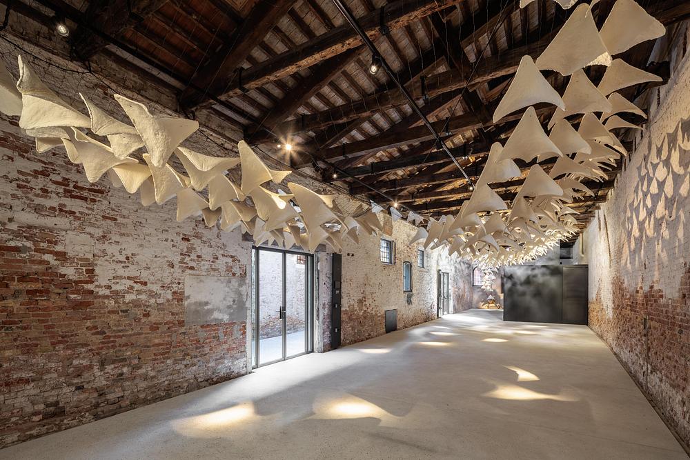 The spatial concept draws inspiration from the Komorebi effect. This term describes sunlight passing through tree leaves. In Flight Into Shadow, the designers translate this natural phenomenon into an architectural setting.
