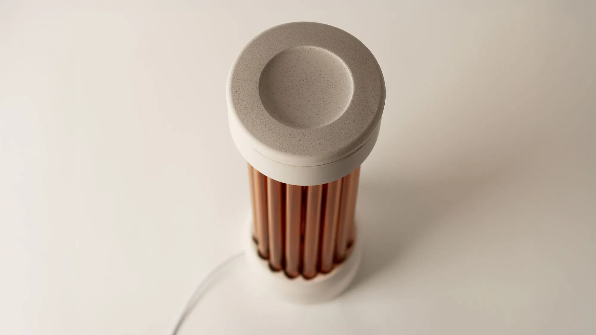 To demonstrate the potential, MIT developed the Geolectric Lantern. The lamp consists of two geopolymer parts connected by a ribbed glass tube. Sensors embedded in the upper section detect proximity and touch. As a hand moves closer, a ring of LEDs intensifies and lights up fully on contact. The design blends the warmth of ceramic-like materials with intuitive digital interaction.