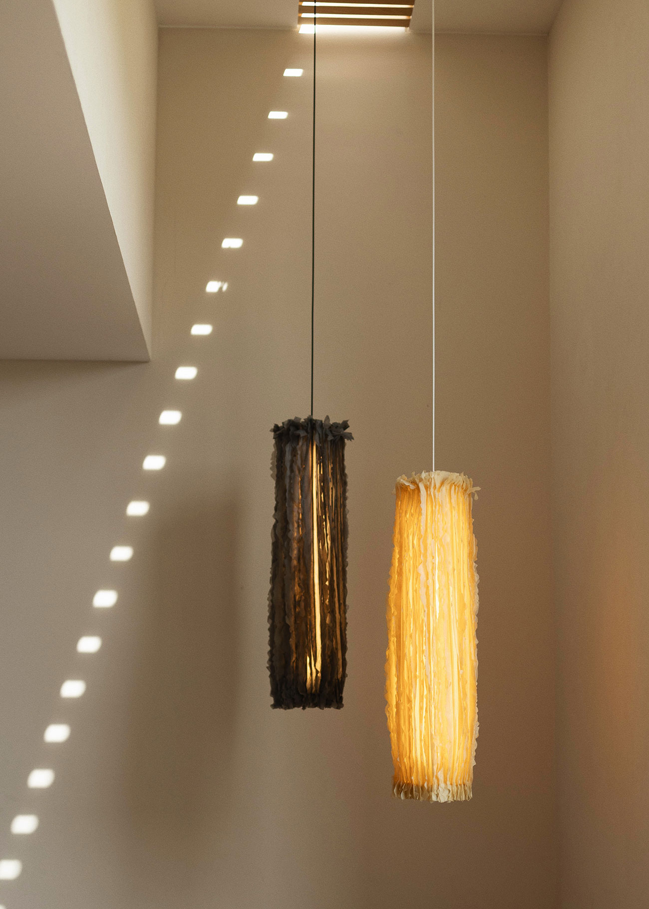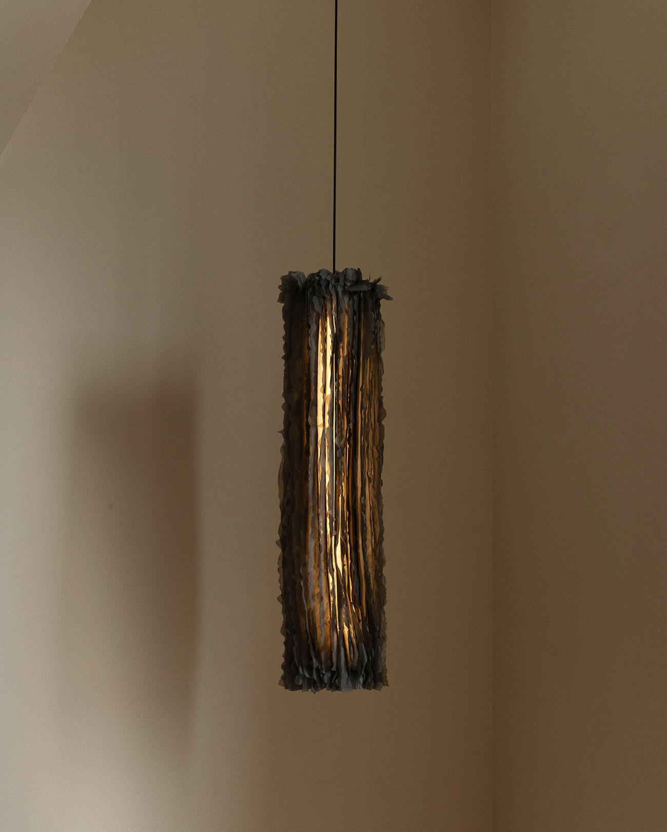 Lapso premiered at the Biofab Fair by Biofabricate during the London Design Festival 2025. It comes in two finishes: Natural (undyed) and Humo (dark). Each lamp is handmade and delivered with a certificate of authenticity.