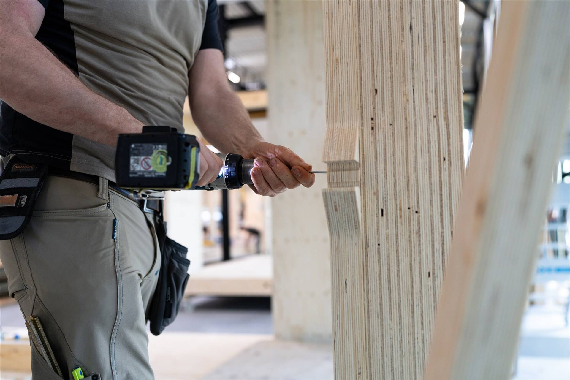 The project team selected LVL for its high strength-to-weight ratio and dimensional stability. These properties make the material well suited to modular construction.