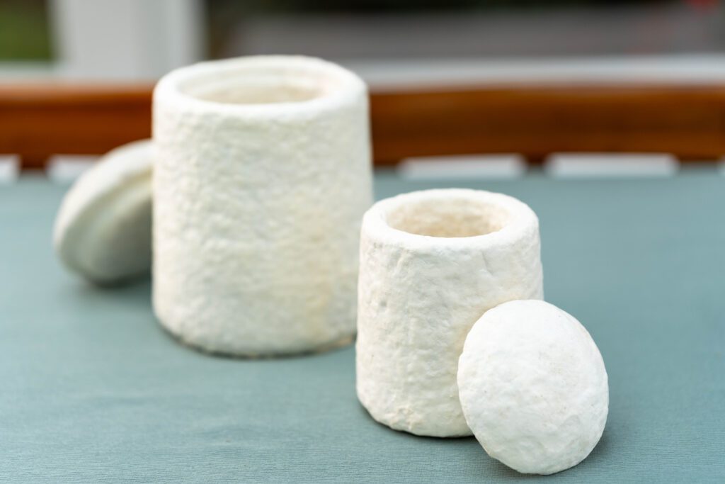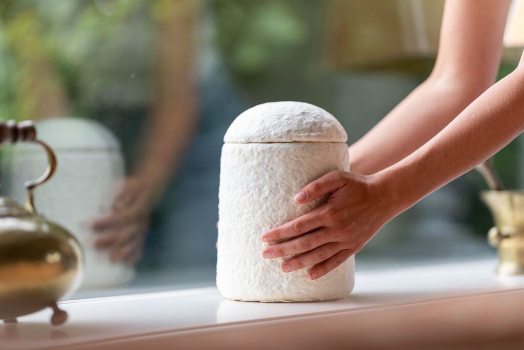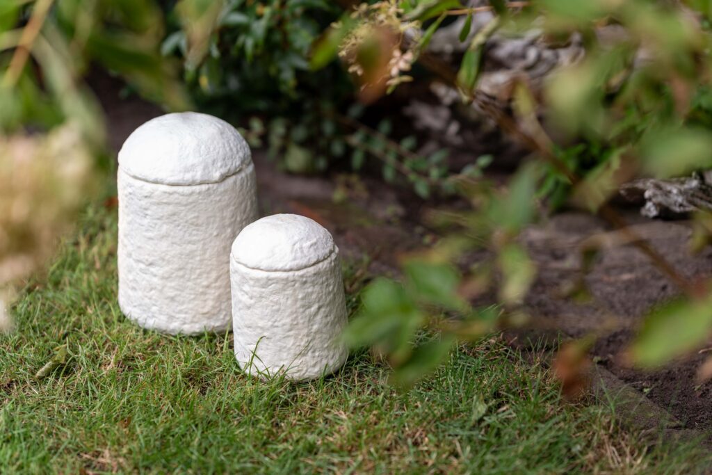 Each urn grows naturally within seven days from mycelium, the root structure of mushrooms. Mycelium acts as one of nature’s most effective recyclers. By combining it with upcycled Dutch hemp fibres, Loop Biotech creates a strong, light and fully compostable material. Because the urn is cultivated rather than produced, it needs no heat, chemicals or waste. The design continues the company’s earlier innovations, such as the a (human) coffin and urn, which use similar biobased materials.