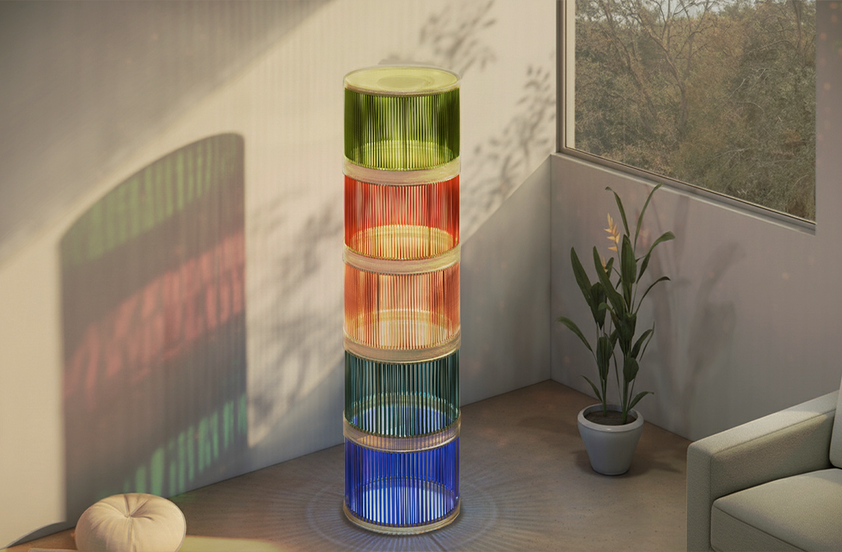 Each module assembles in minutes and does not require tools. The units stack into tall columns or compact lamp-sized pieces, so designers can create both small and large installations. Thanks to the interchangeable textile skins, one set of frames can shift from a display object to a luminaire or a wayfinding feature.