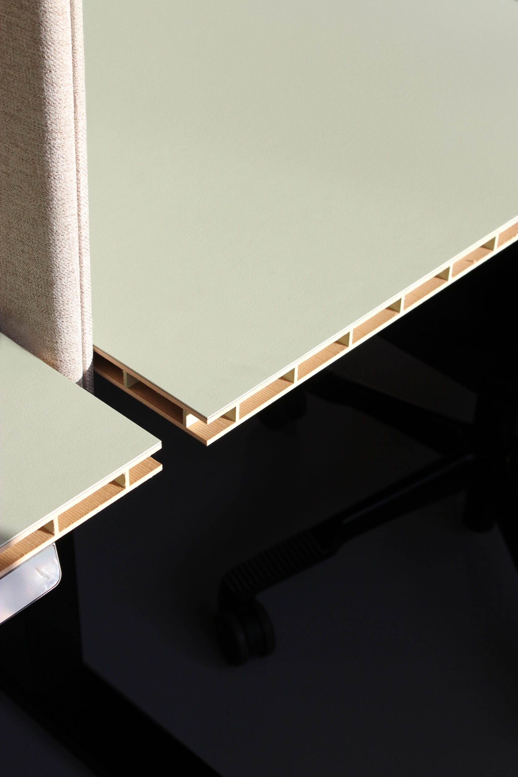 One of van der Heijden’s key innovations is #greengridz—a lightweight, durable and fully circular sheet material used for the production of worktops and furniture applications. In 10 years’ time the goal is to replace all traditional massive furniture panels in the European market and beyond with #greengridz. Refusing the use of material, so there is less recycling needed and the waste problem becoming smaller and smaller.