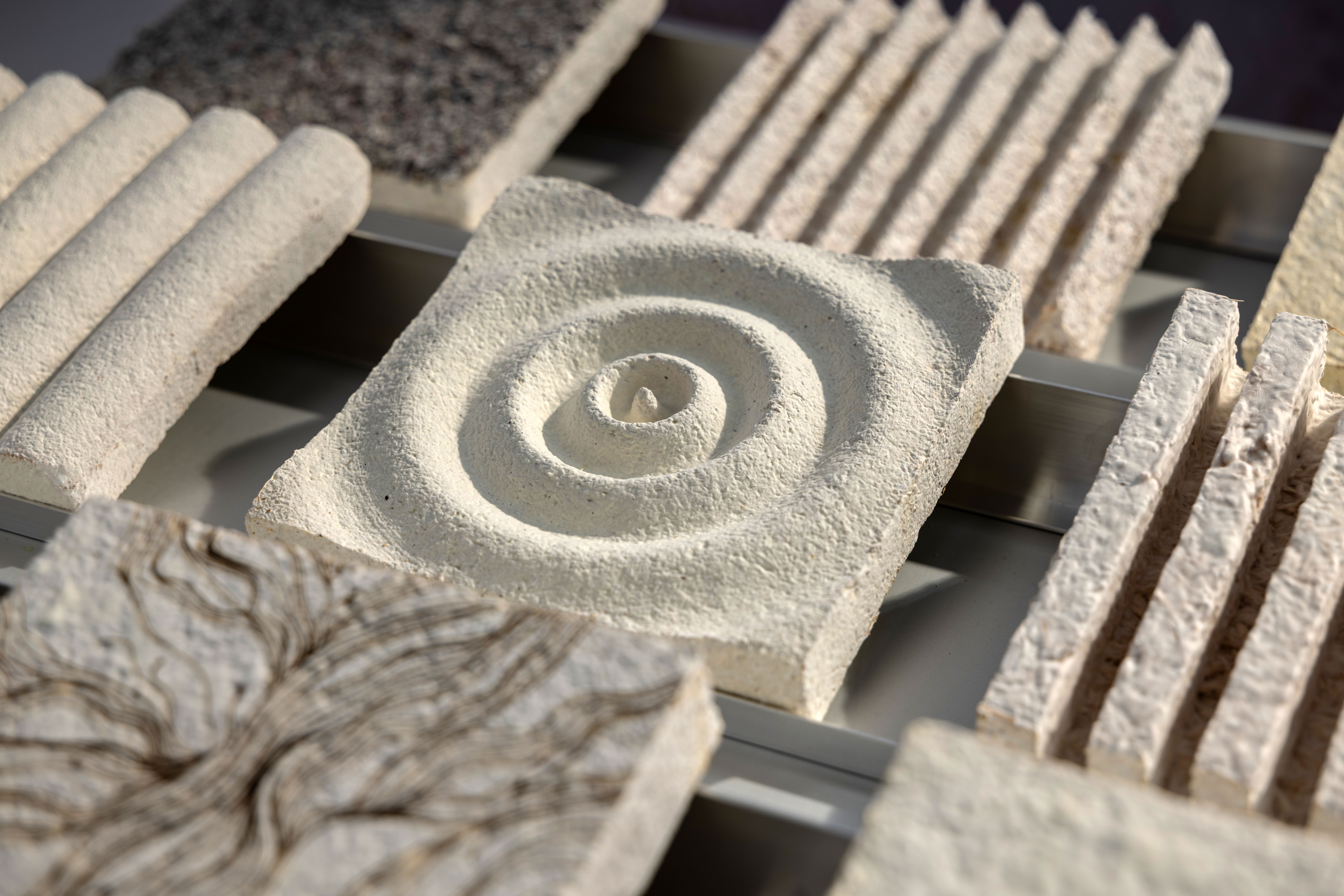 One of the most striking participants is Front Materials (NL), known for their radical reinterpretation of ceramics and masonry. With products such as Skip Tile and WasteBasedBricks, Front demonstrates how industrial waste streams can be transformed into aesthetically refined, directly applicable building materials — with a significantly reduced CO₂ footprint and water consumption. Their work shows how circularity has moved beyond experimentation and is becoming part of serious construction projects.