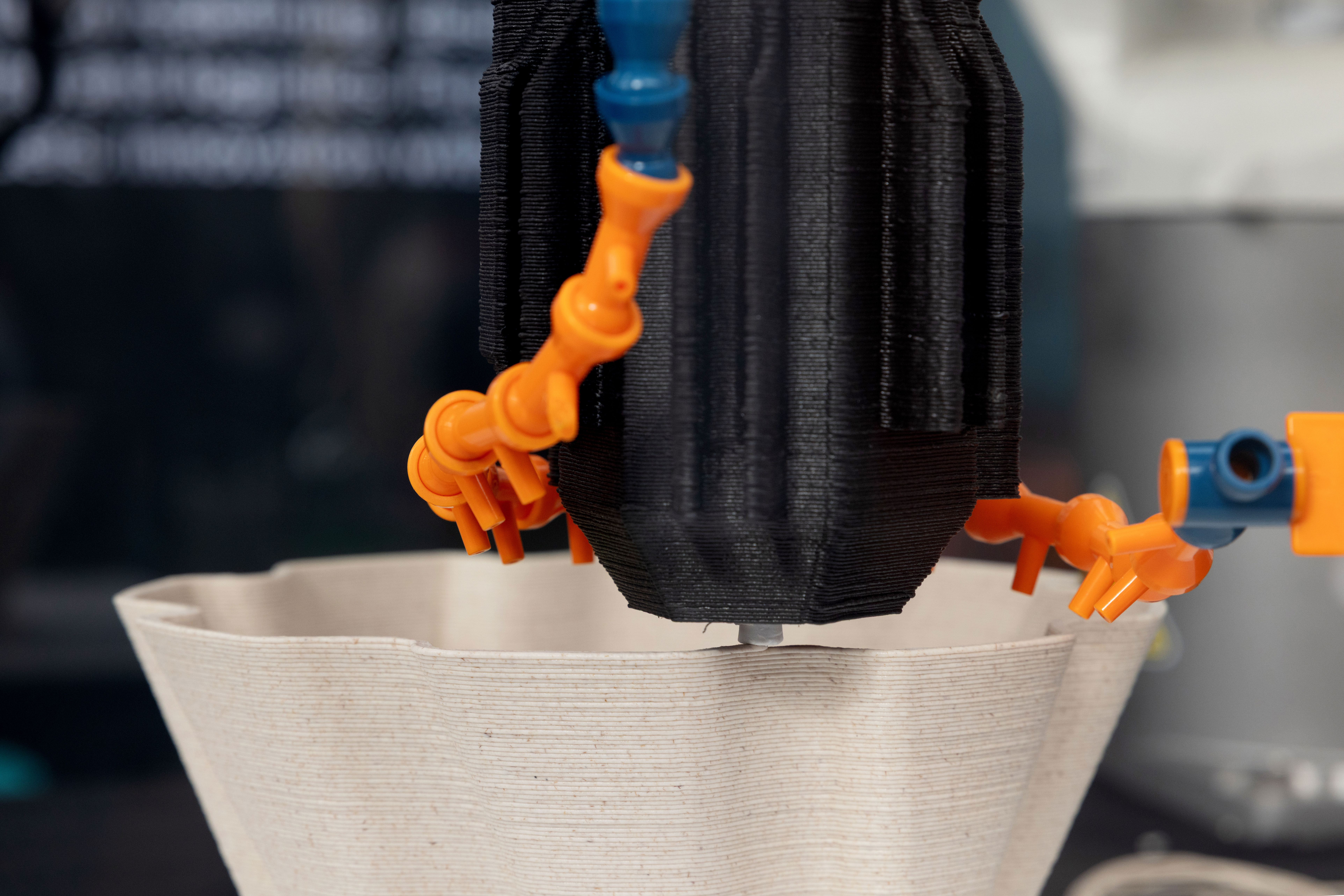 The installation illustrates how local production, digital distribution and material reuse come together as an alternative to the traditional furniture industry. The live 3D printing robot thus forms a tangible example of the NextNow theme: sustainable production methods that are no longer experimental, but already operational today.