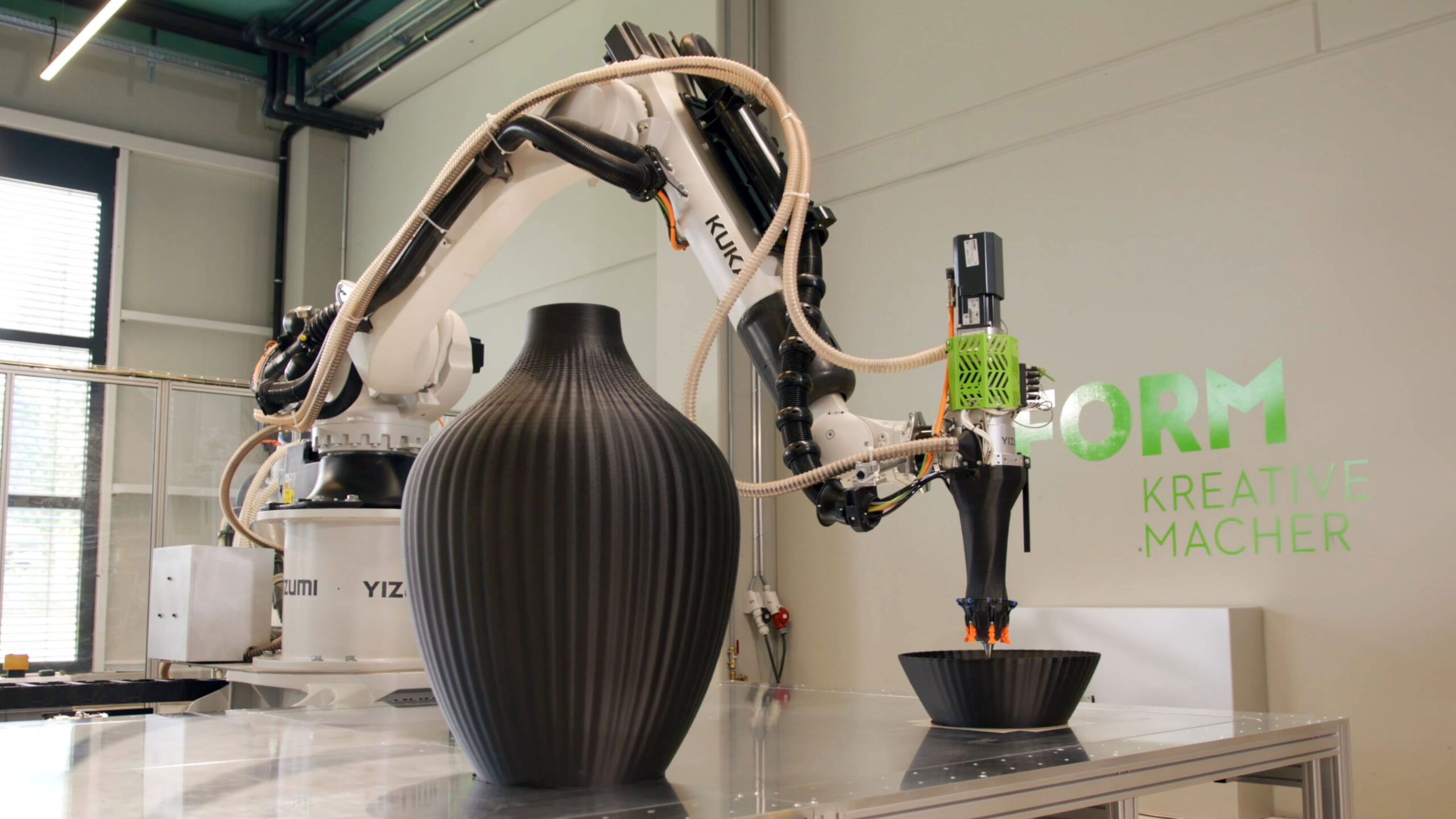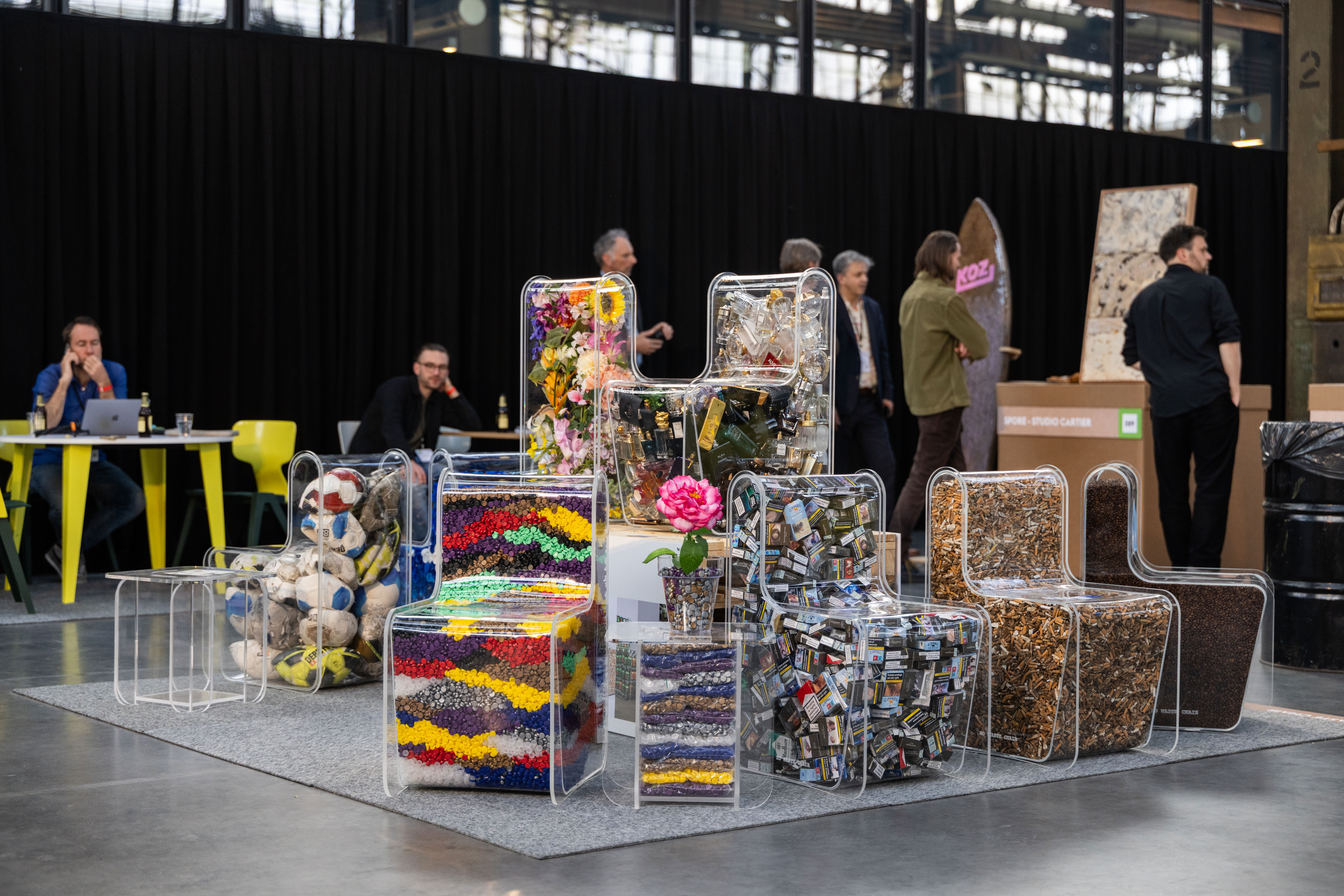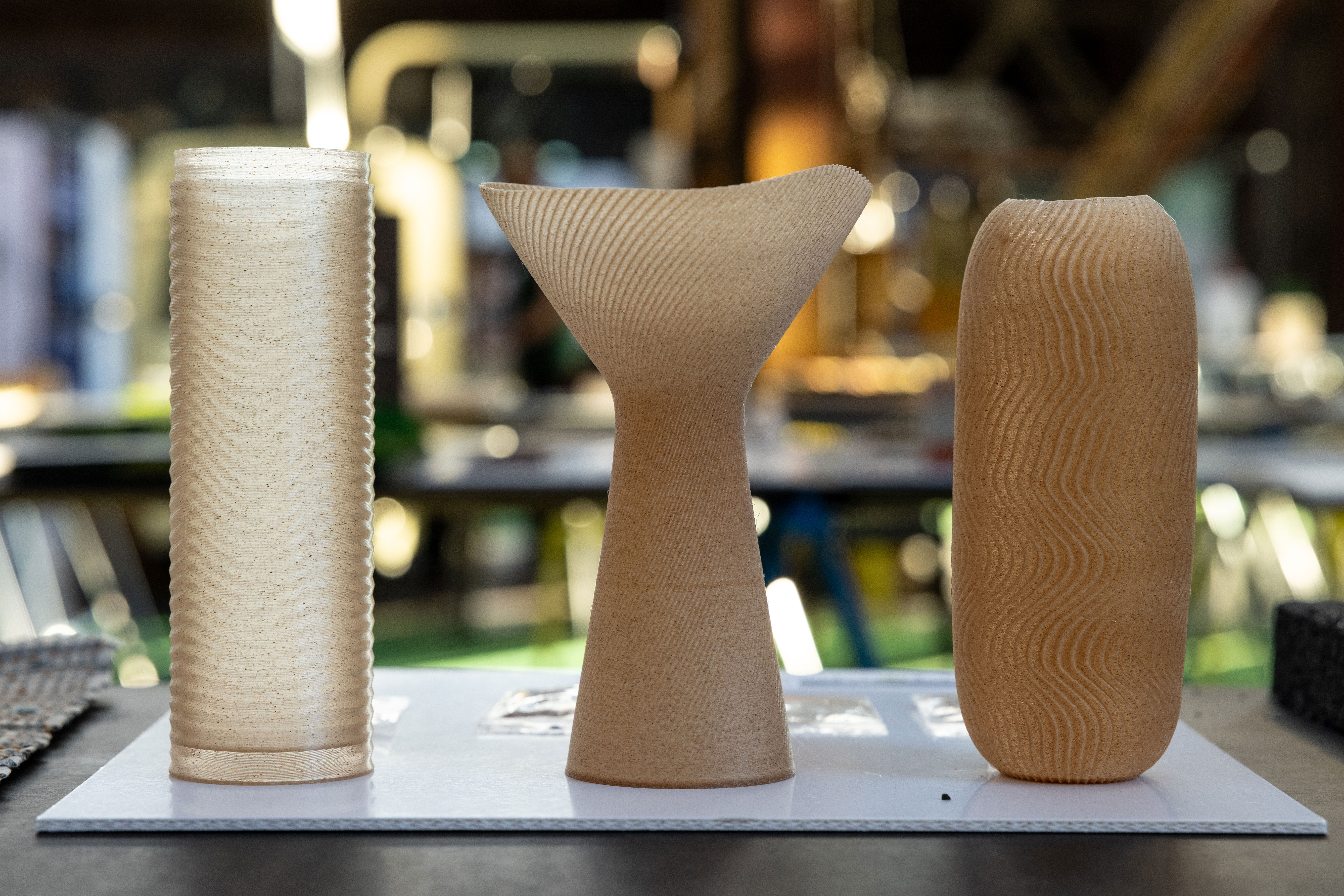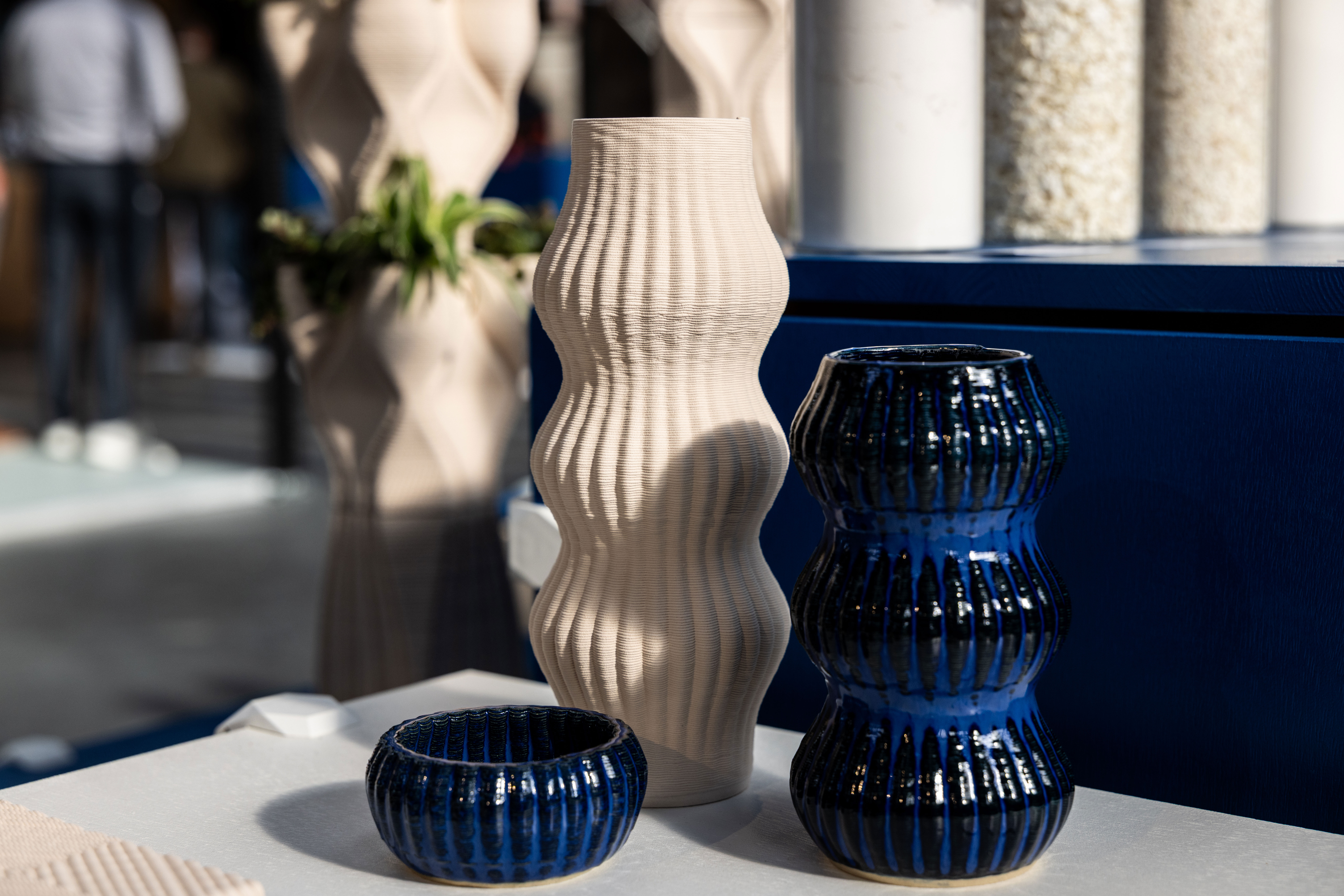 During the exhibition days, furniture is produced on site using recycled materials. Visitors can observe how digital designs are translated layer by layer into functional objects — without moulds, without stock and without traditional transport. The focus is not on the end product, but on the production process itself.