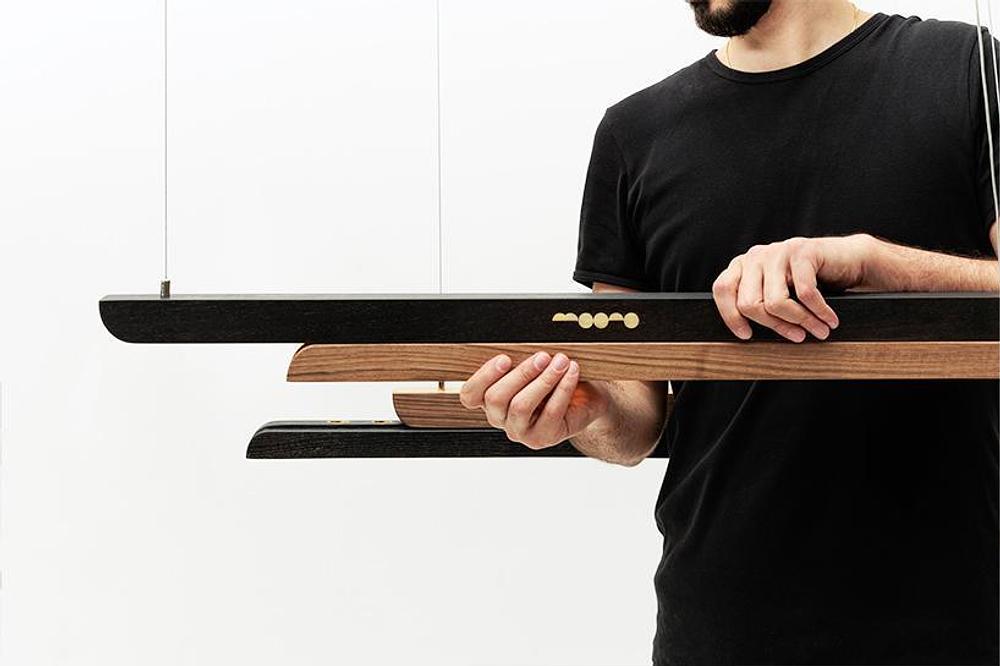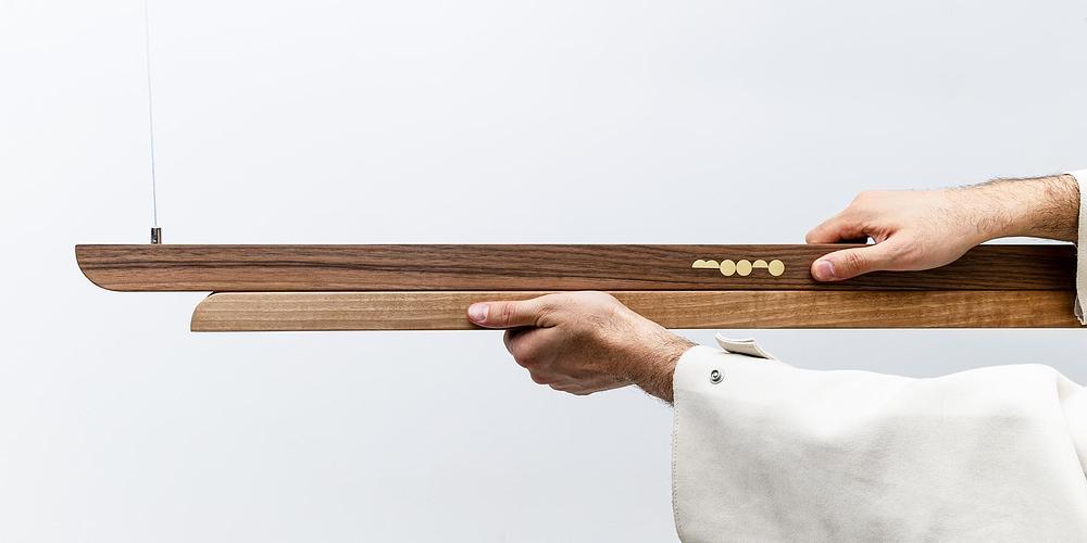 Moono Sliding Pendant Light Explores Kinetic Lighting In Solid Timber