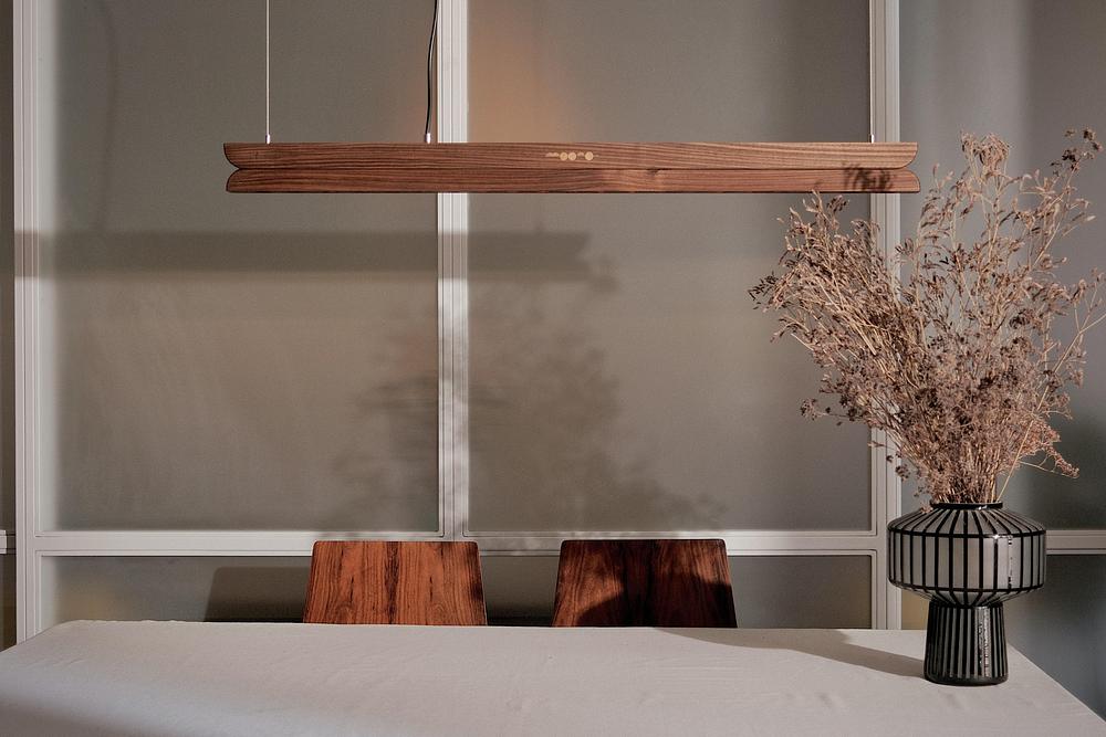 For architects and interior designers, Moono illustrates how lighting can be conceived as a material-driven architectural element, where timber, metal detailing and light are integrated into a cohesive system.