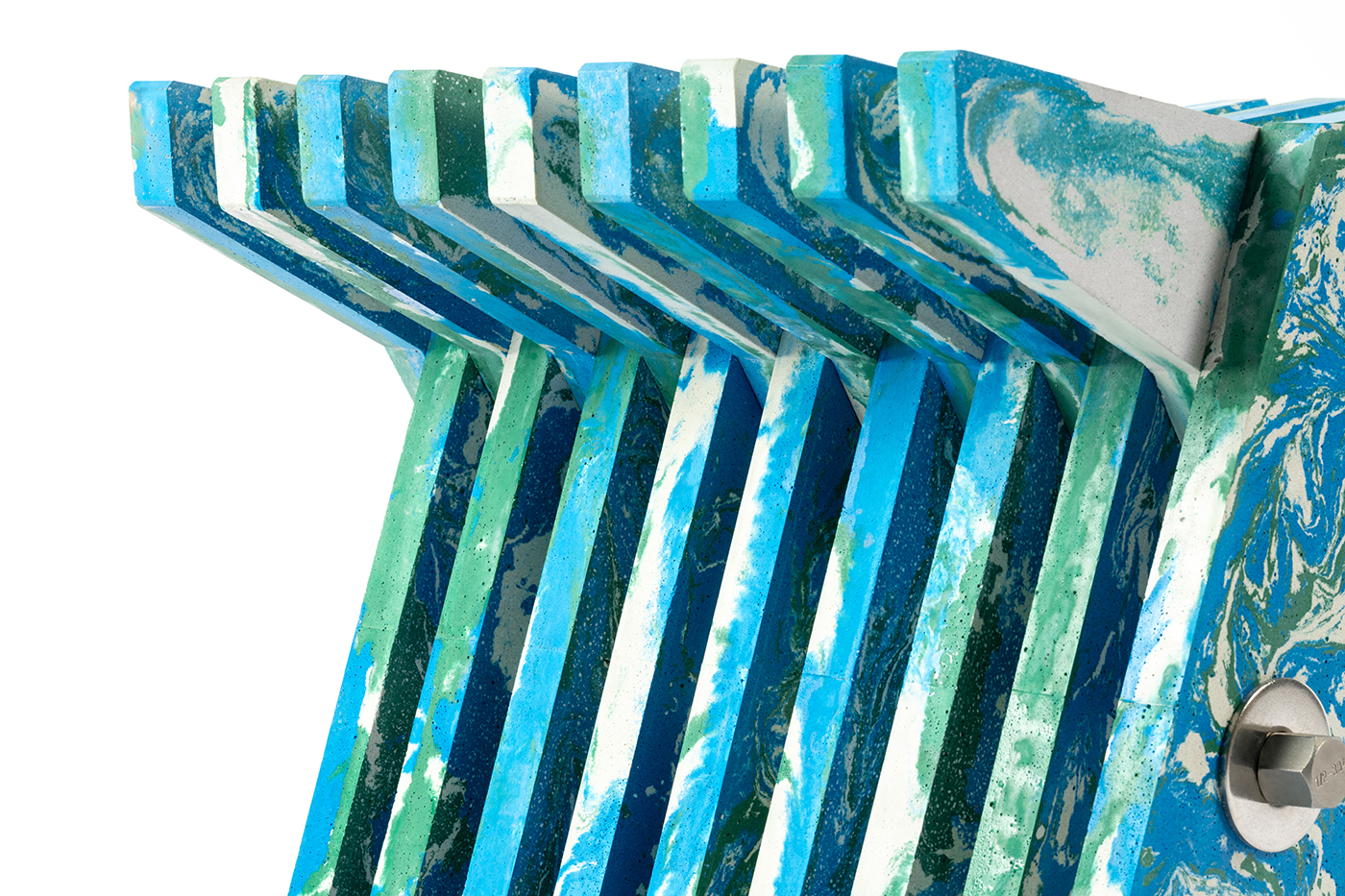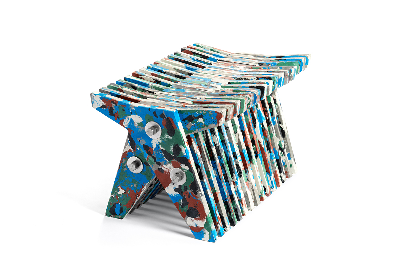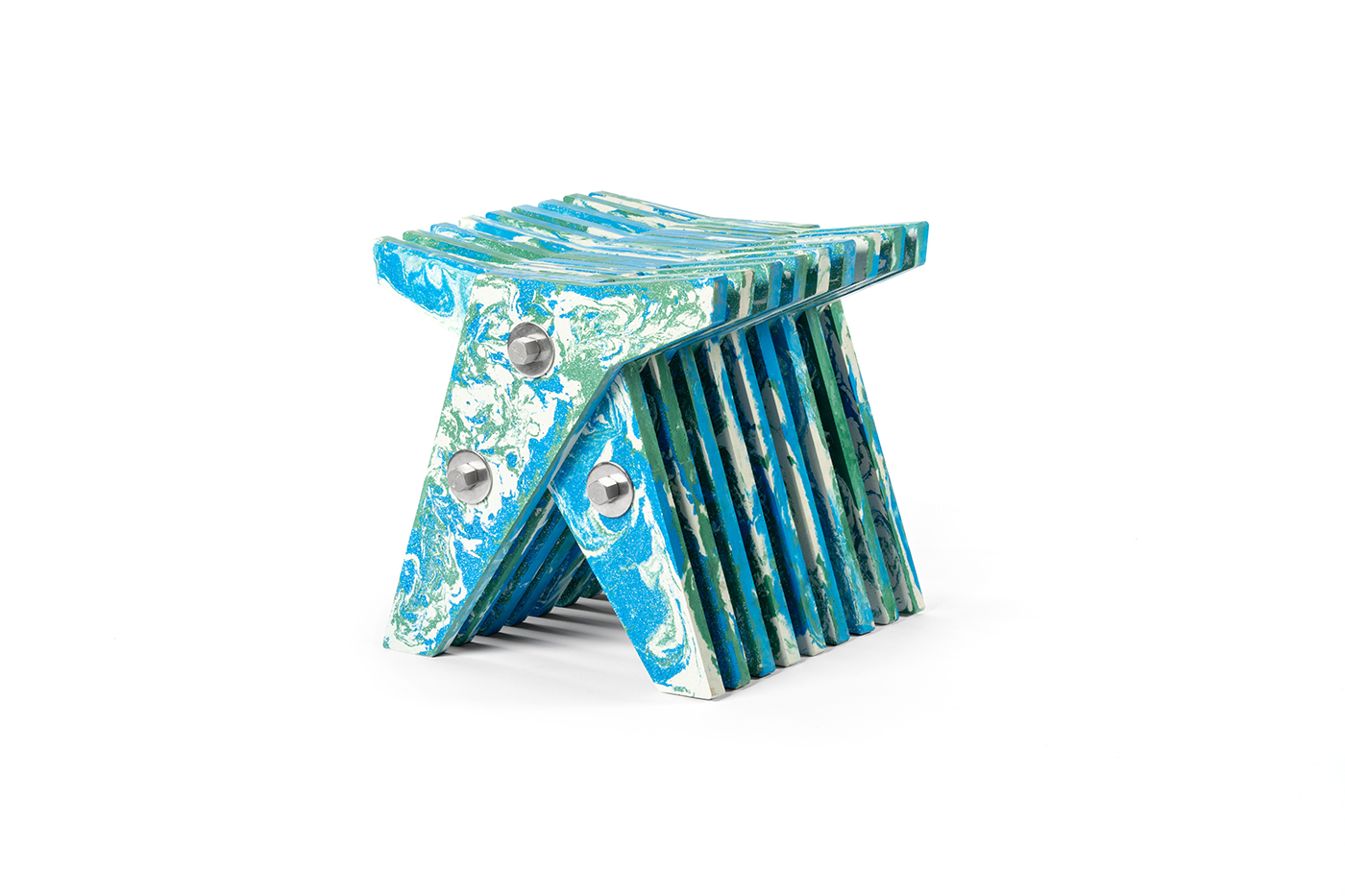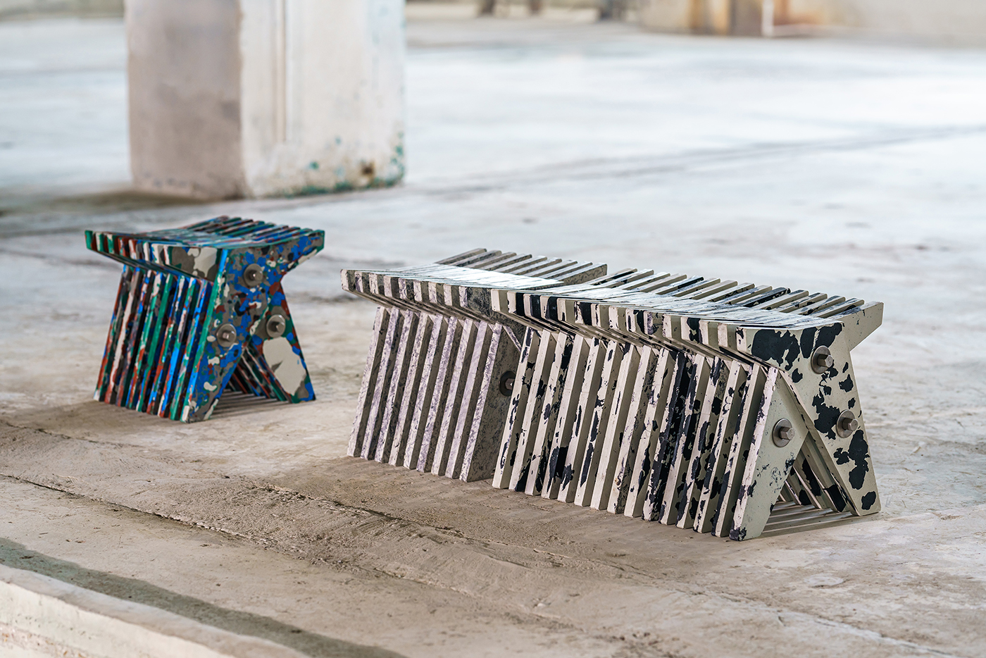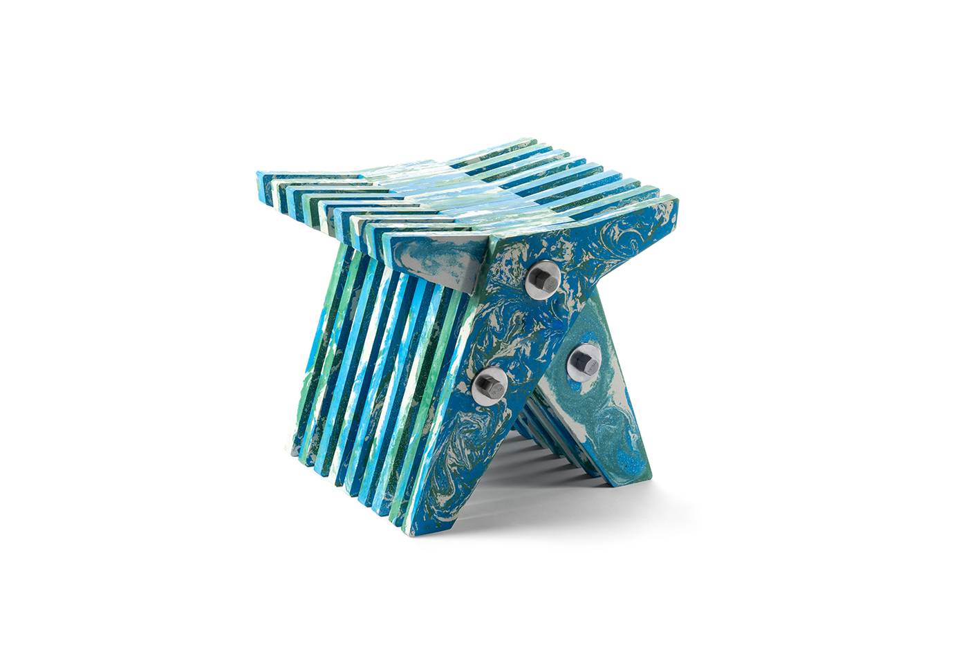The ‘X’ stool is designed for outdoor and public environments. Its weight and strength make it suitable for urban landscapes and architectural applications. The project shows how waste materials can meet high technical standards.
