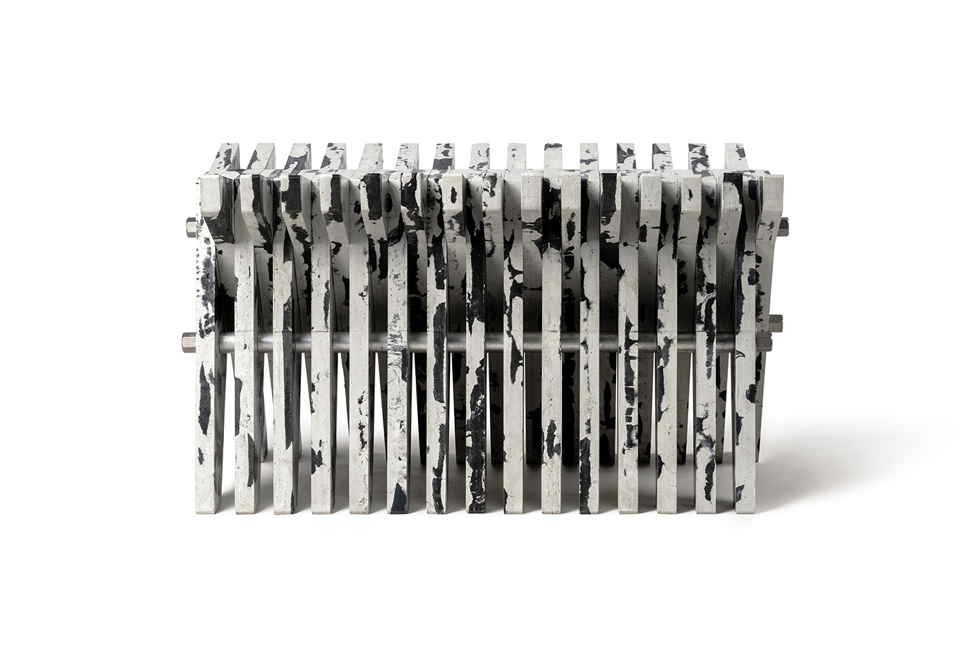 Bentu Design developed the ‘X’ stool using a composite of fly ash and other industrial by-products. These include steel slag, recycled ceramics from Jingdezhen, red sandstone tailings, and silica powder. The final material contains more than 90% solid waste.