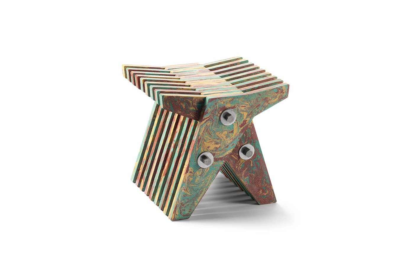 The ‘X’ stool illustrates how designers can turn waste into a resource. Bentu Design combines material research with circular thinking to create new applications for industrial by-products. This strategy reduces emissions and opens up new opportunities for sustainable design.
