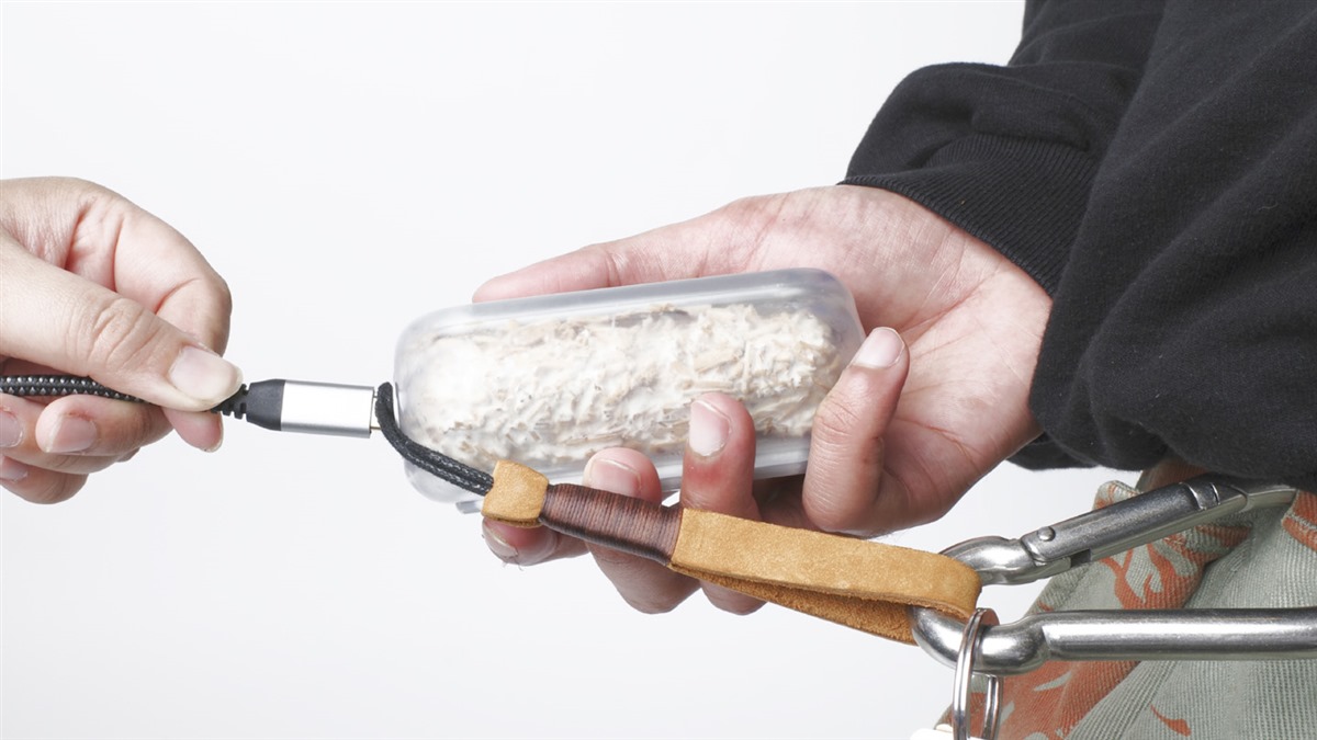The casing is made from a composite of mycelium, hemp fibres and polylactic acid (PLA). All materials are sourced from waste streams, reinforcing the project’s circular ambition. Mycelium provides natural shock absorption and structural strength. Hemp fibres improve durability, while PLA acts as a bio-based binder.