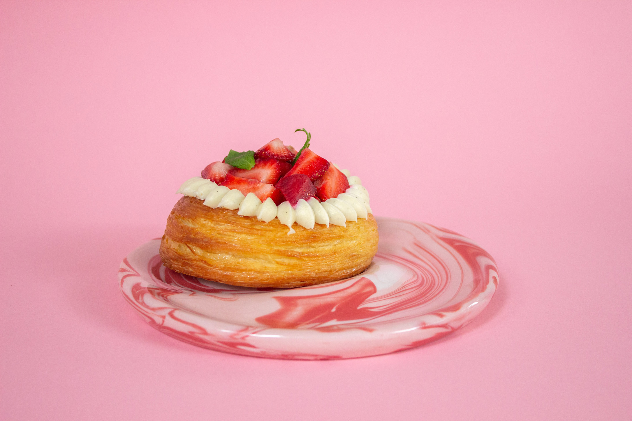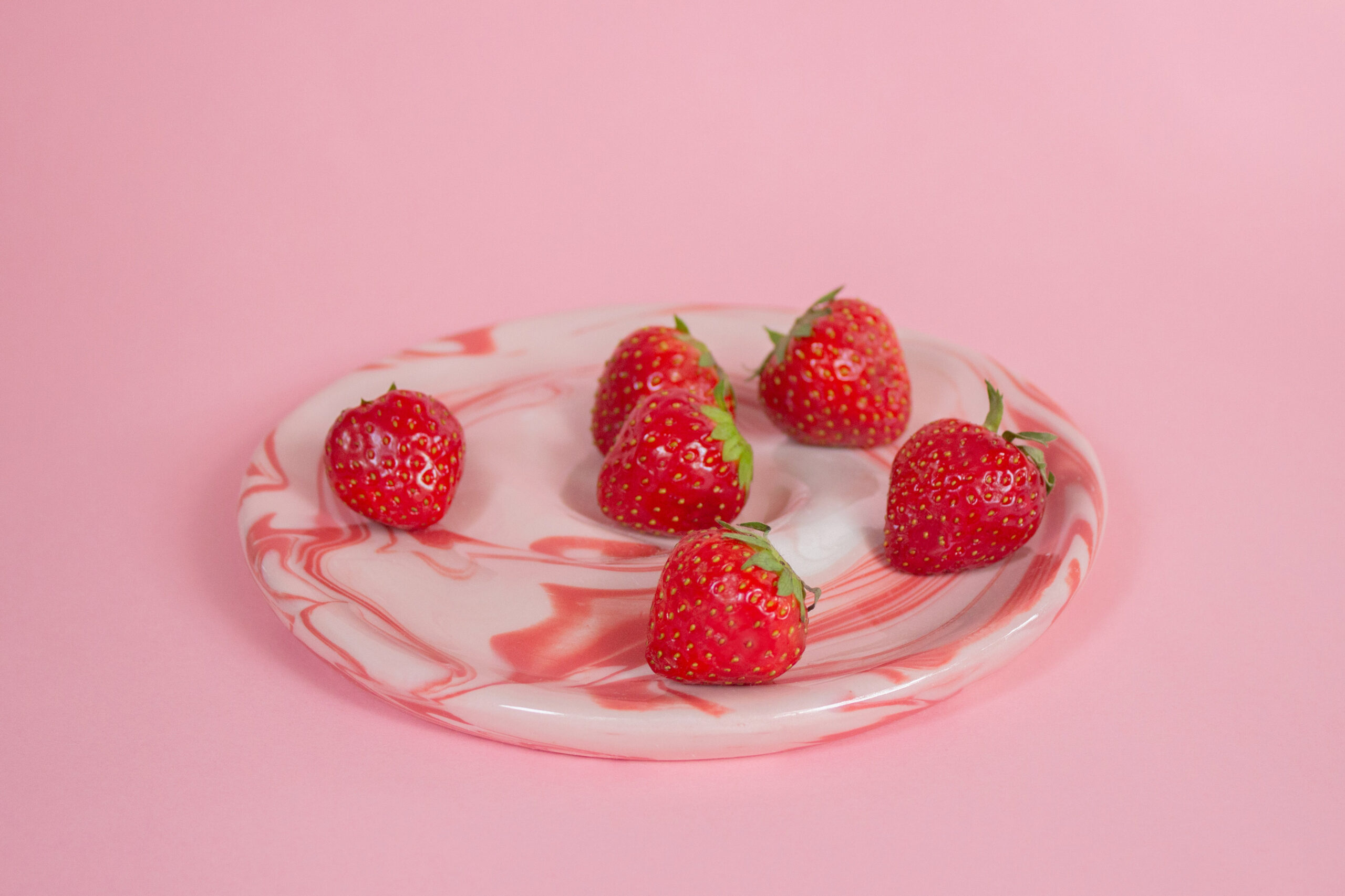The UMA collection consists of two porcelain dishes, each designed to evoke different sensory impressions. The dessert plate, inspired by cream and toffee, features a glossy spiral pattern. It is created by mixing two coloured clays in the mould, a process similar to traditional candy making. The resulting marbled surface gives each plate a unique visual identity.