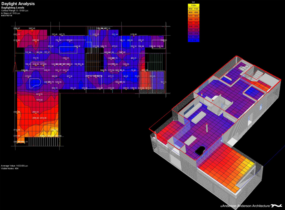 The owners have a number of animals, dogs and cats and occasional injured strays that they were concerned with protecting from the prevalent local hawks, eagles, coyotes, and rattlesnakes. Rather than compromise the design with the addition of a retrofitted chain link dog run, they developed a thoroughly integrated animal house. For budget reasons, local contextualism, and appropriately barnyard practicality, they settled on chain link as a major material system for the house, protecting domestic animals and people from other animals or from accidental falls from the upper terraces.