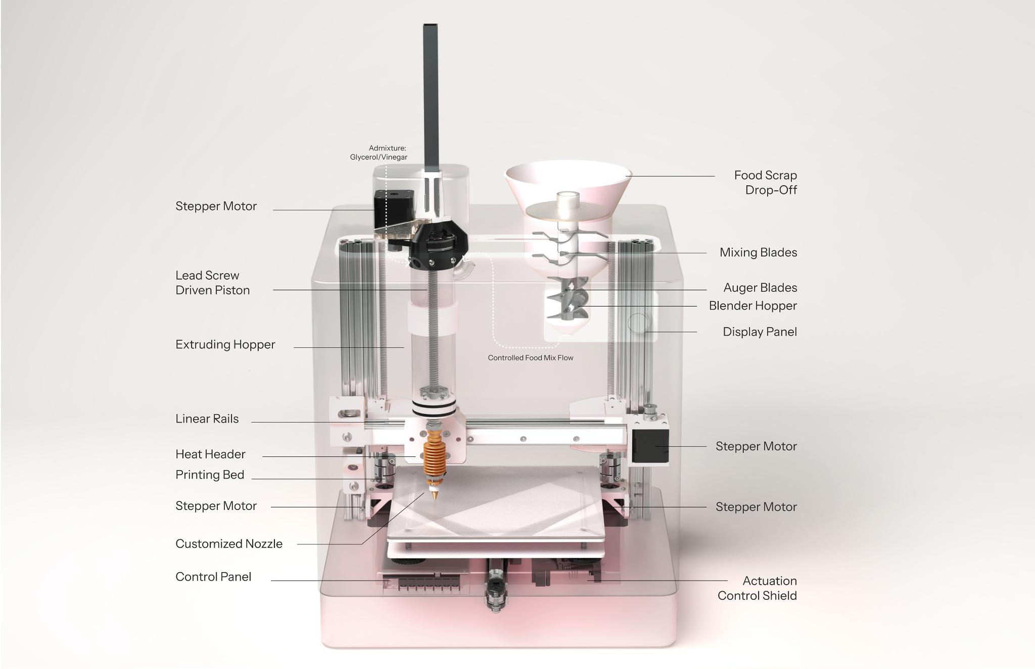 Developed as part of the MIT Solve initiative, the FOODres.AI Printer is the result of a collaboration between designers Yiqing Wang and Biru Cao. This innovative desktop 3D printer offers a creative solution to food waste by combining artificial intelligence with additive manufacturing. The project aims to tackle one of today’s most pressing environmental issues while engaging communities in sustainable practices.