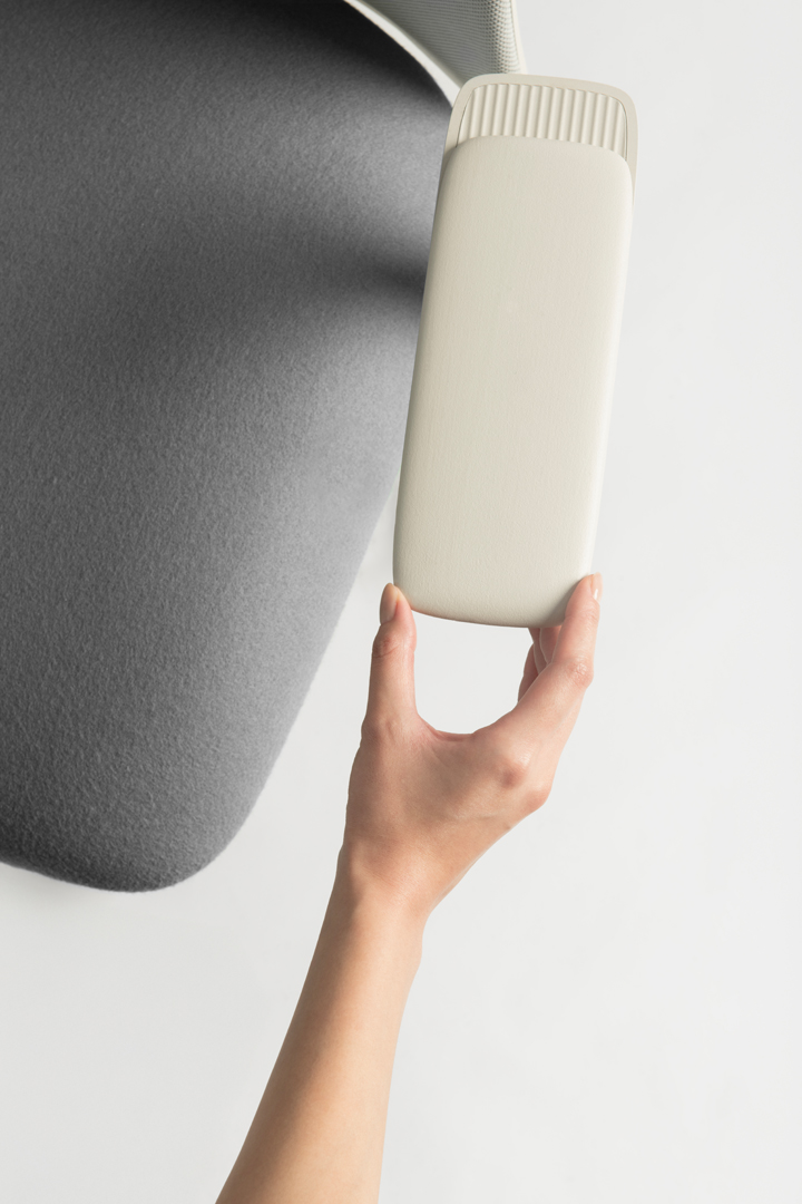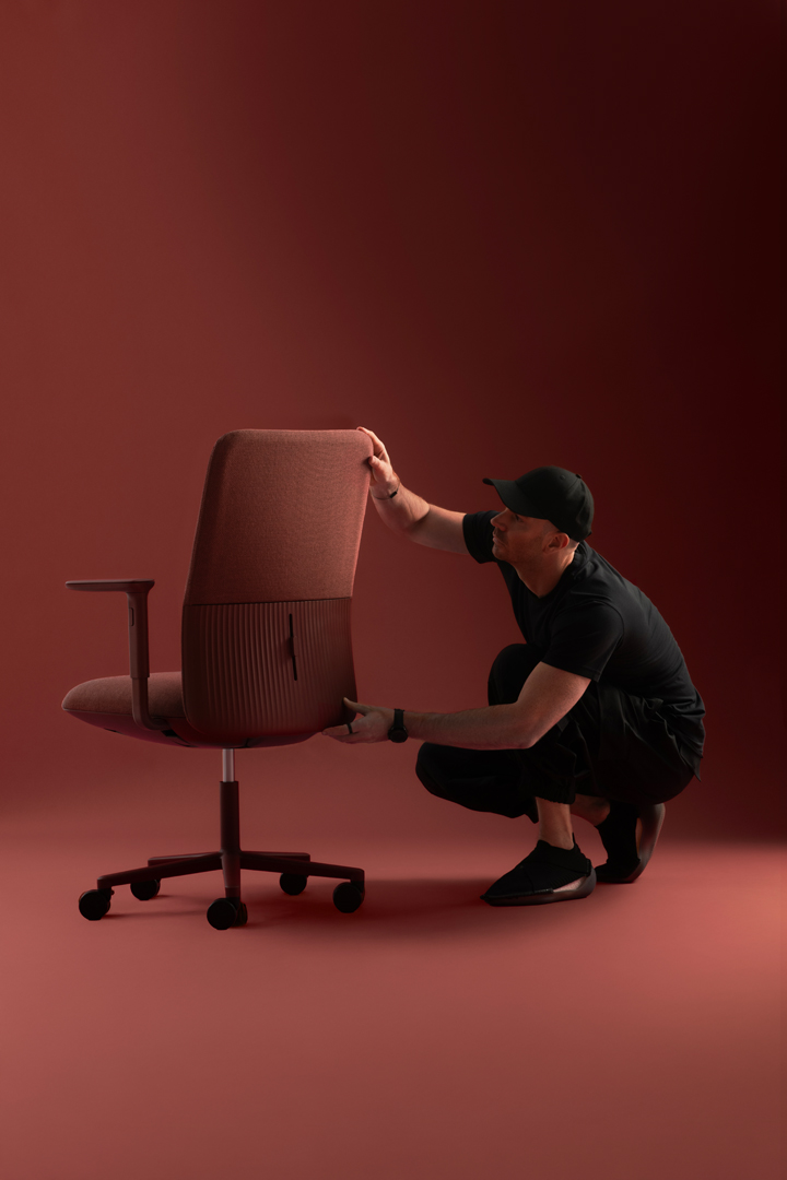 The chair places strong emphasis on recycled materials and circular design. Its frame and base use high-performance recycled thermopolymer, chosen for strength, durability and recyclability. This material choice helps reduce environmental impact while ensuring long-term performance.