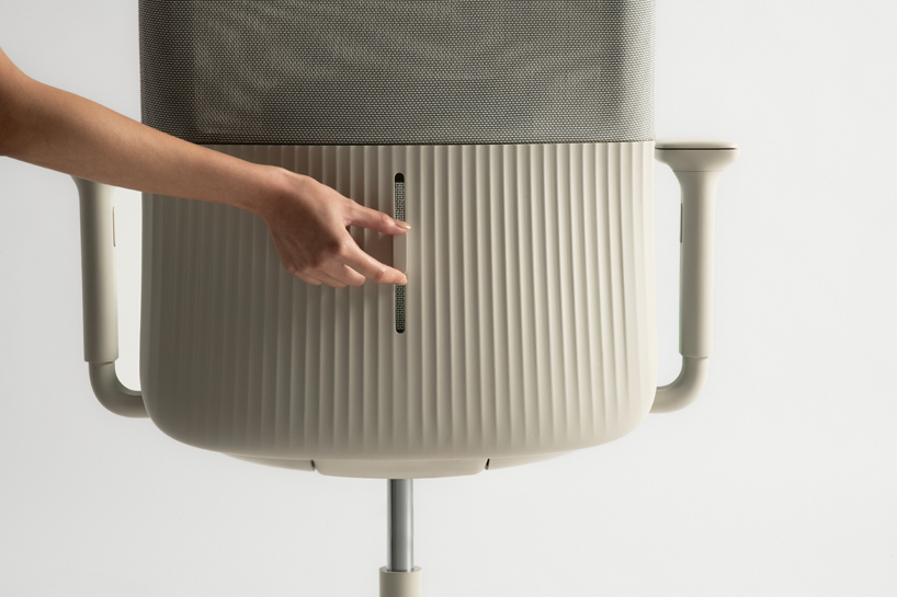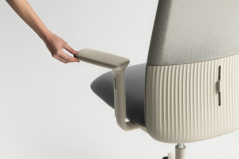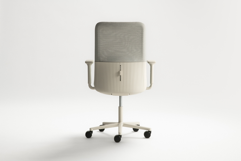 Velo works through a weight-activated mechanism that replaces traditional levers and mechanical adjustment systems. This system relies on how the materials flex and respond to the user. As a result, the chair adapts continuously to posture and movement. The approach reduces mechanical complexity and highlights how materials can drive ergonomic performance.
