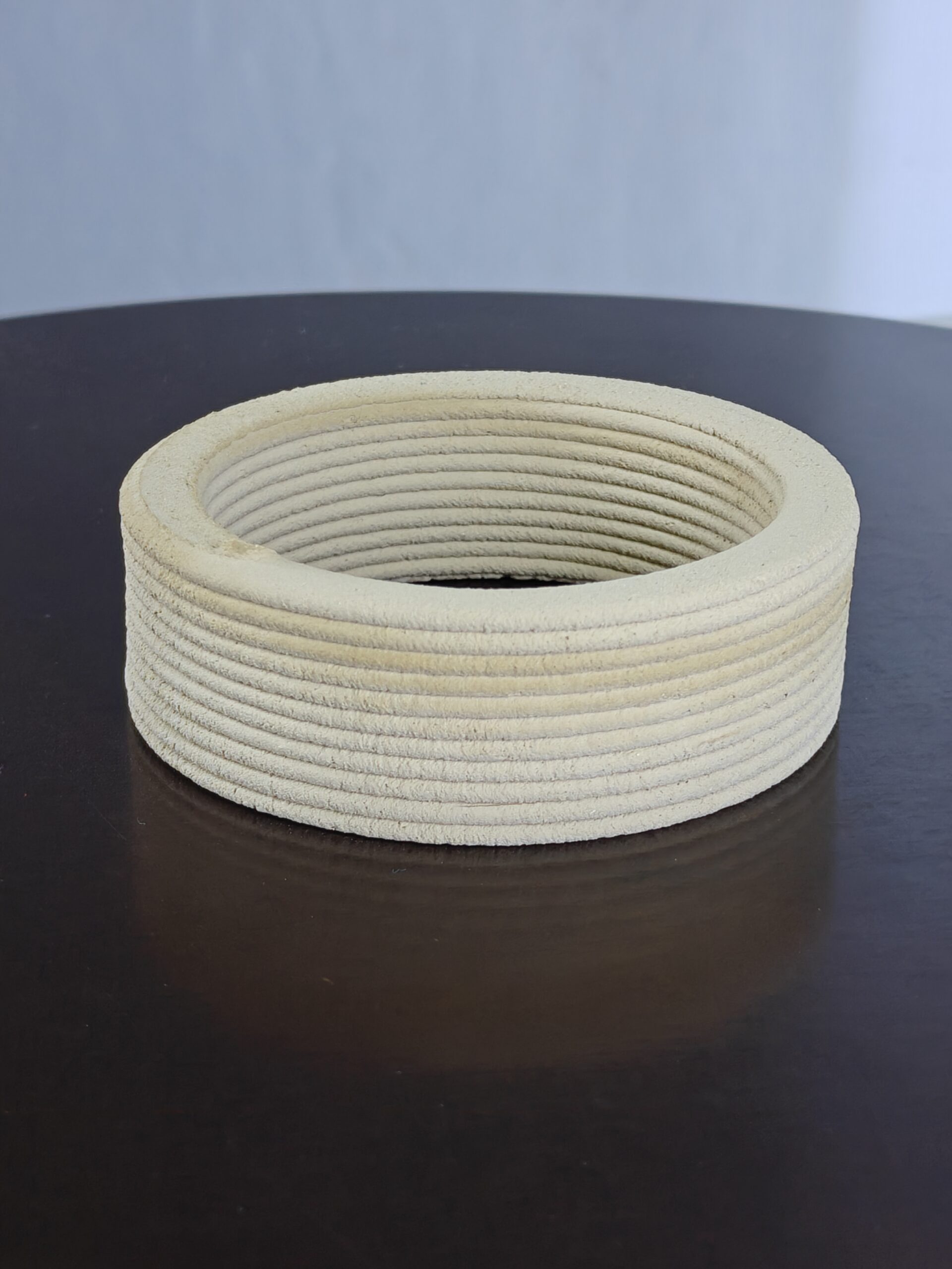 This Ambitious research project introduces a New Materiality for Limestone through the introduction of additive manufacturing. Recycled limestone from construction waste and discarded seashells are recovered and processed into a granular form, reimagined via 3D-printing. The process mirrors Limestone’s own geological formation, a layer-by-layer deposition. Rather than limited to the confines of a finished block, Limestone is reframed as programmable matter, ushering in Neolithic Futures.
