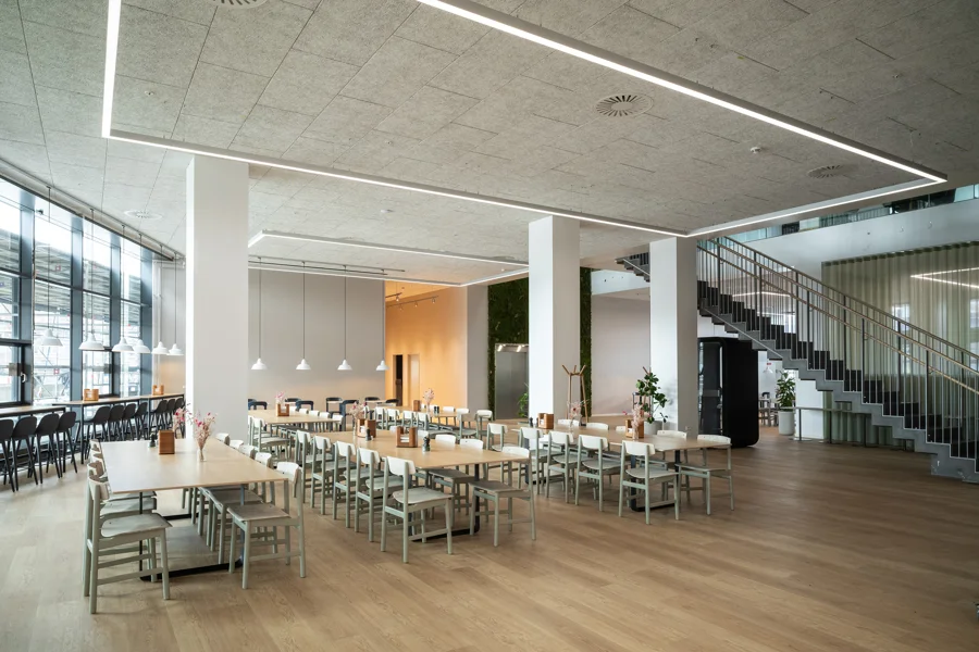 Troldtekt acoustic panels based on FUTURECEM™ combine cement-bonded wood wool with a reduced-carbon cement technology. By replacing traditional grey cement with FUTURECEM, the panels maintain their established acoustic, fire-safe and durable performance, while achieving a significantly lower environmental impact.