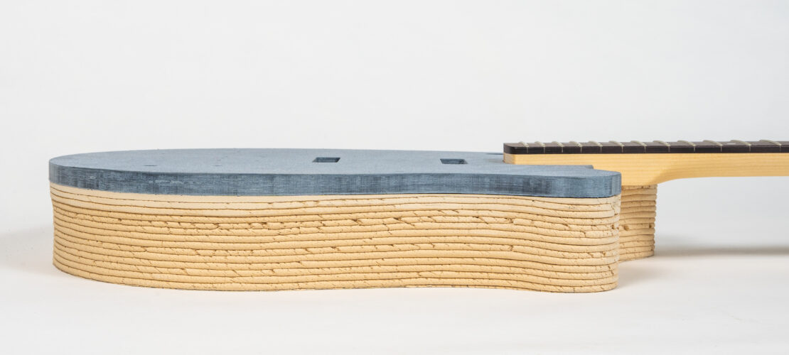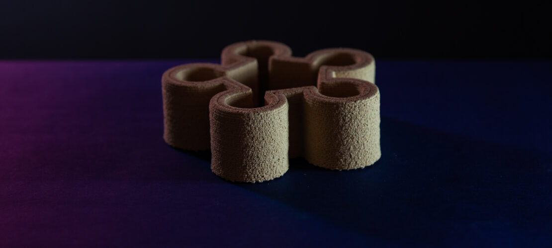 The system follows a circular approach: printed parts can be shredded at the end of their use phase and reprocessed into new printing material. The resulting components are reported to achieve mechanical strength comparable to chipboard while maintaining a lower density. This combination allows for the design and production of voluminous, irregularly shaped furniture and interior elements.