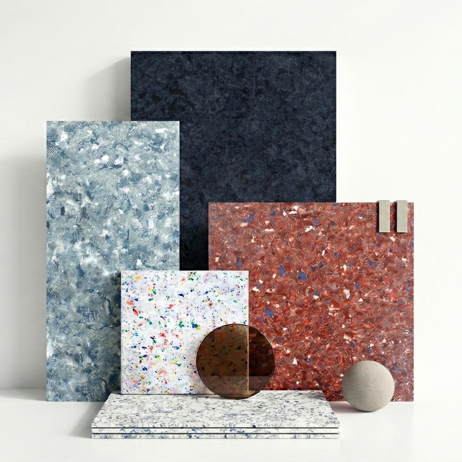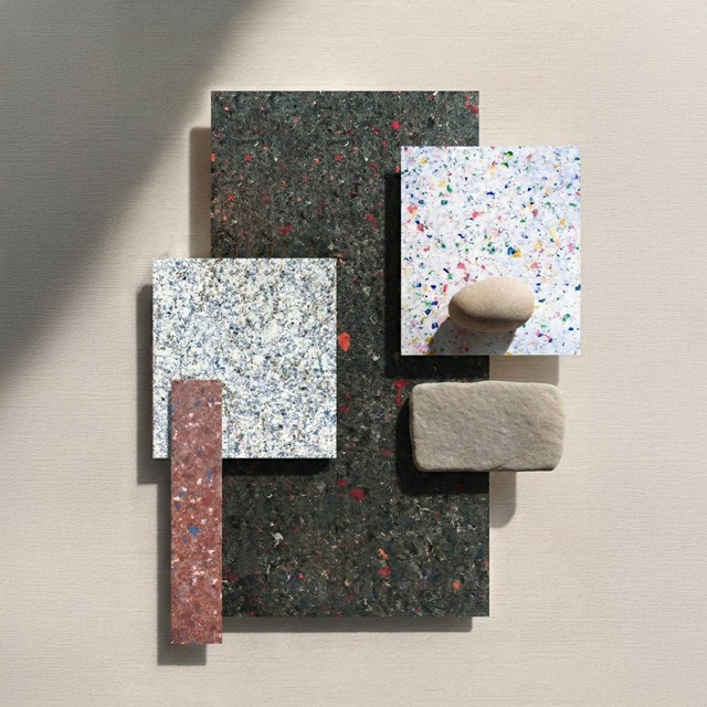 Stelapop textile board is textile chopped into particles and pressed into boards. The material is considered as a high to density material that can be constructed into lifestyle and office furnitures, tops and decorative interior. The material surface has coated to serve surface durability and wearability functions.