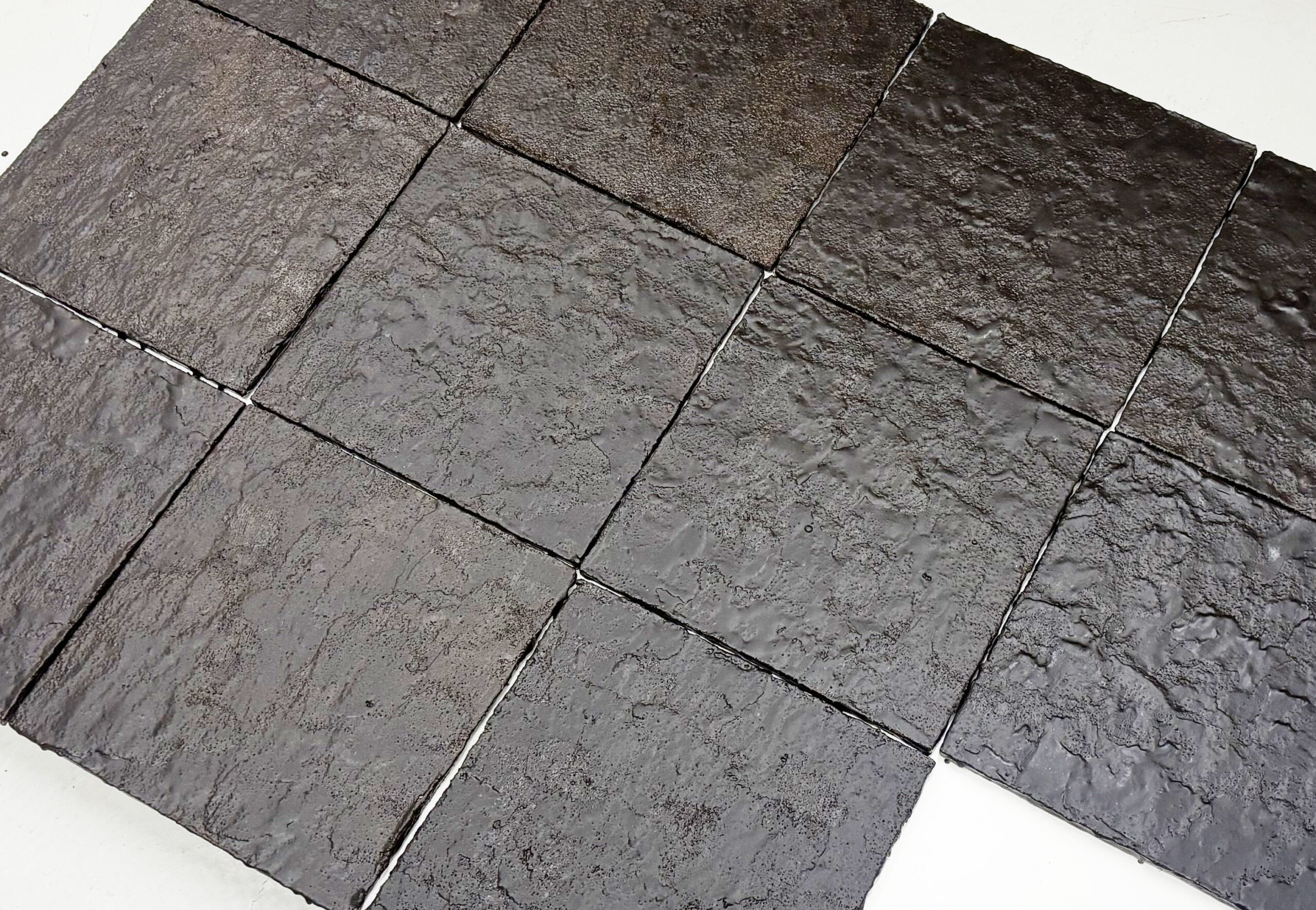 Each tile is handcrafted, with variations in tone and surface revealing the natural irregularities of the material.