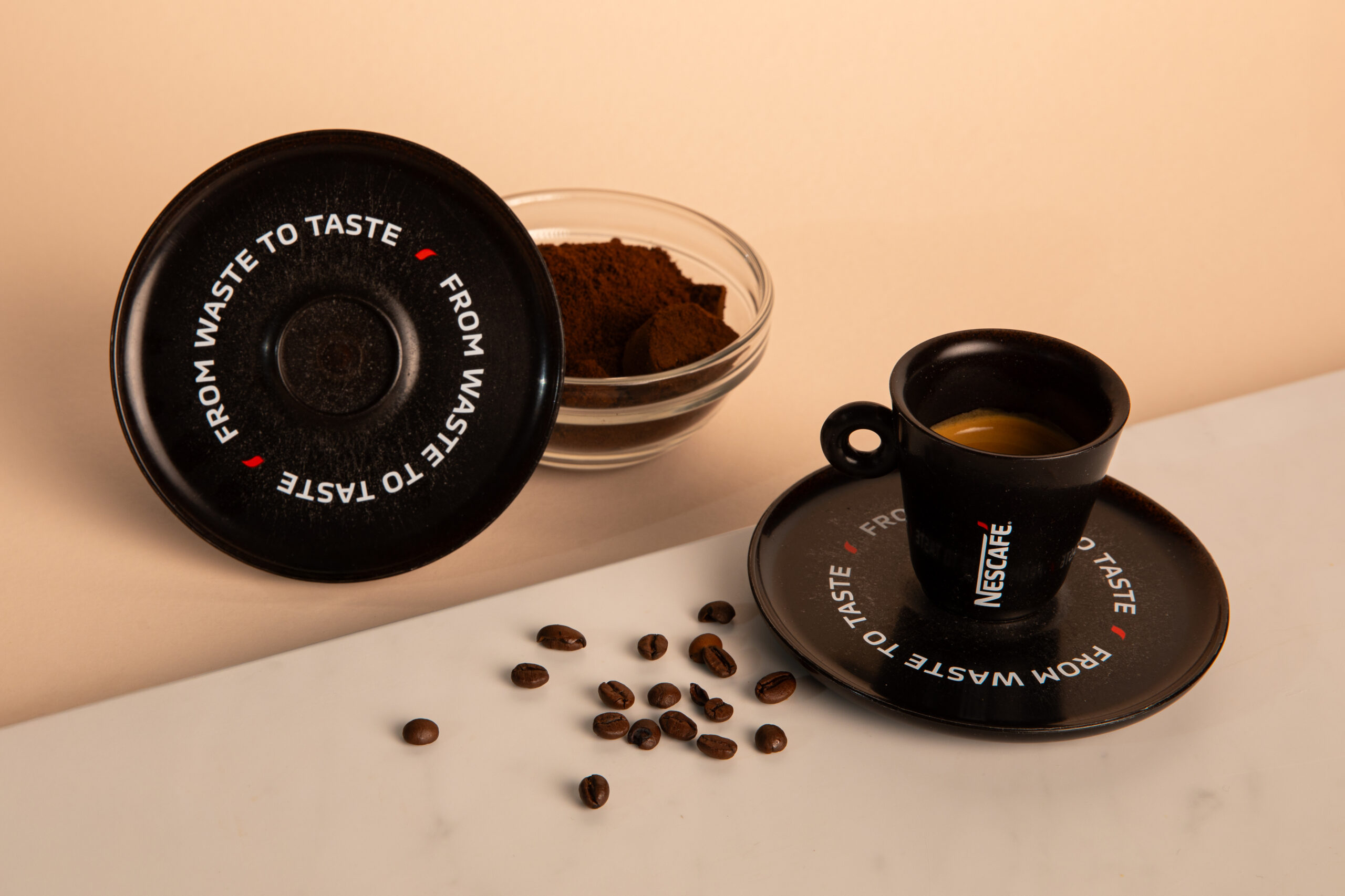 Coffeefrom® Texture is composed of coffee grounds of industrial origin (10%) mixed with polypropylene (PP). Rigid and resistant to high temperatures, this material is food contact certified and dishwasher safe, resisting up to 125 wash cycles. Suitable for injection moulding, Coffeefrom® Texture combines technical performance with circular design, making it ideal for tableware, packaging, and durable service products. On the final objects, the material enhances the natural espresso-like colour and grain of coffee, adding a warm tactile quality.
