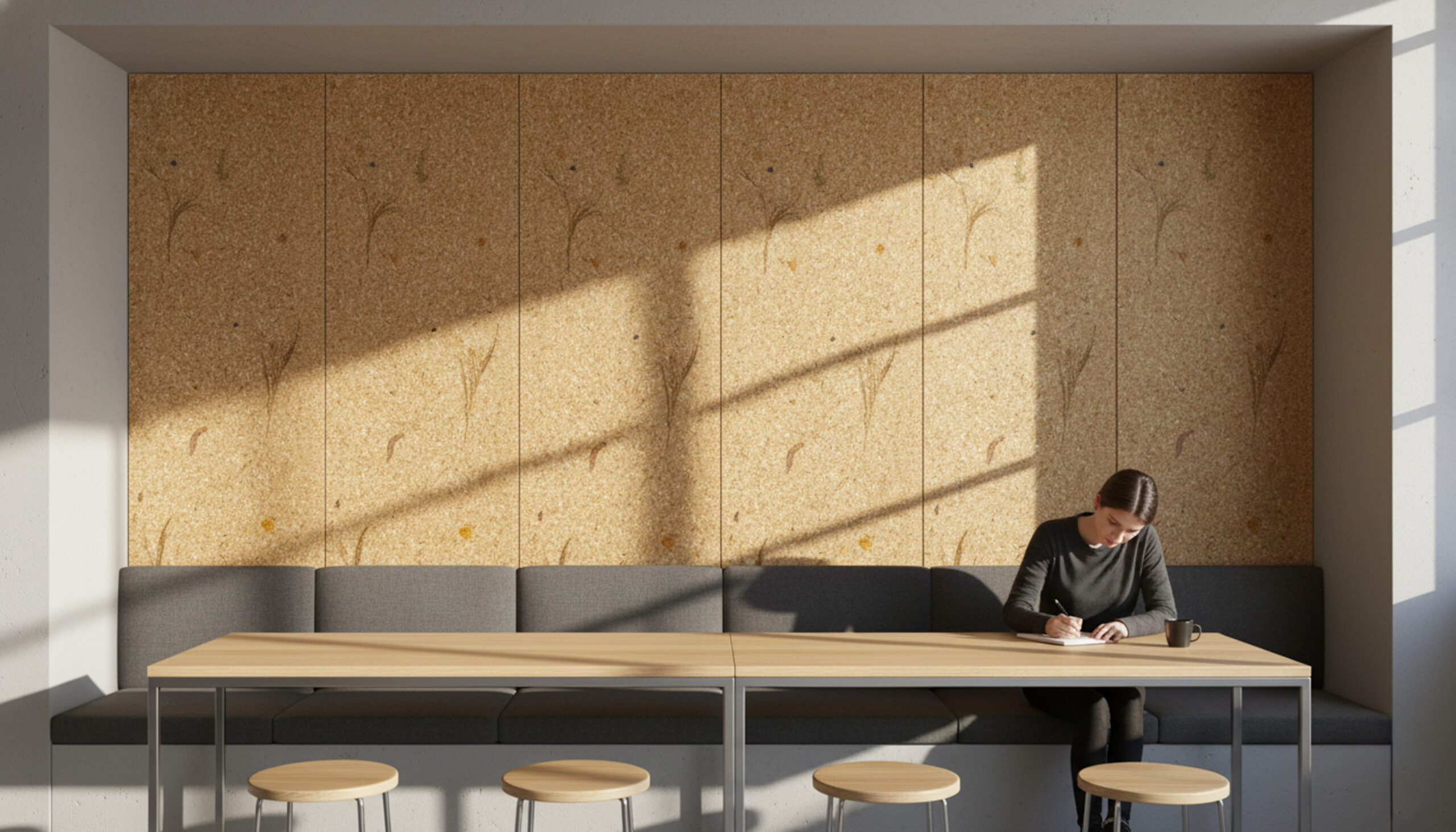 In a world full of noise, silence has become precious. Compostboard absorbs ambient sound, softens spatial acoustics, and creates an atmosphere where conversations can flourish.