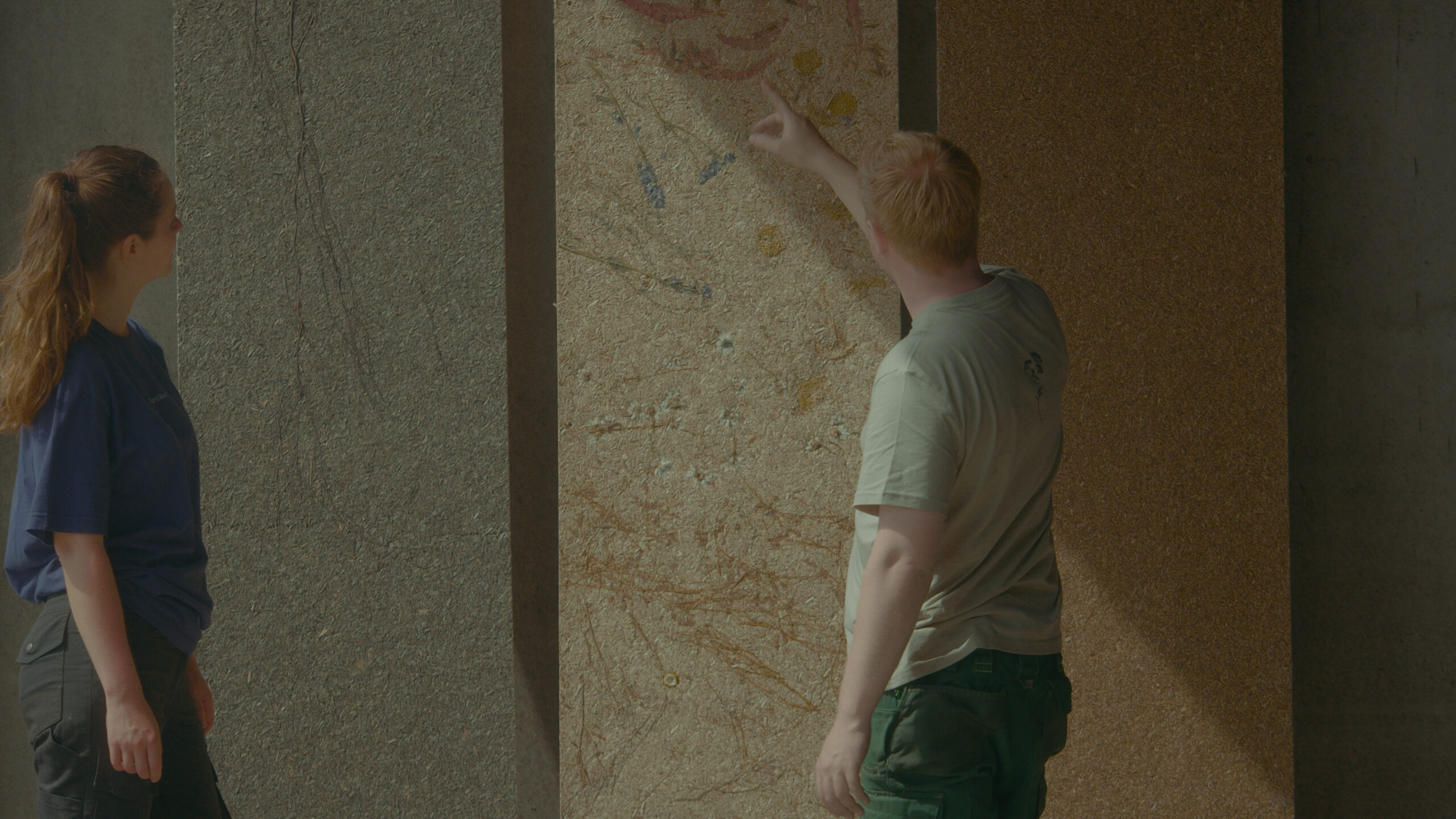 The used binder is starch based. When decomposed the starch energises organisms and fungi, where the fibres are able to keep minerals and moist creating a hummus rich and living soil. This is a nature inclusive sheet material that has a function for both people and nature.