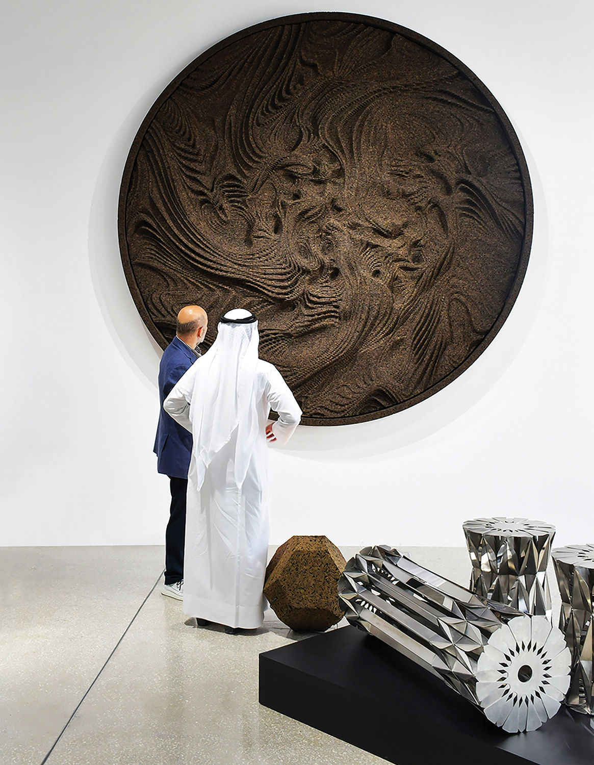 The collection is organised into four categories. Two-dimensional patterns are based on geometric and mathematical compositions, while three-dimensional patterns draw on organic forms and complex spatial geometries. The Greens series integrates biophilic concepts developed in collaboration with Greenarea. In addition, the Collectible series comprises limited-edition pieces exploring the intersection of art, design and artificial intelligence. Many of the patterns are generated using regenerative computational systems that merge algorithmic processes with material performance.