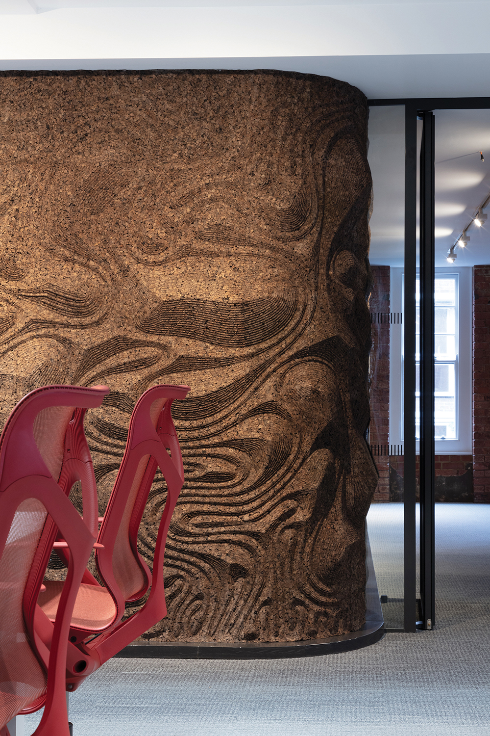 The core material used in GENCORK products is expanded black cork, a 100% natural cork agglomerate manufactured without synthetic additives. The material is characterised by thermal insulation, acoustic absorption and vibration-dampening properties, while retaining the tactile and visual qualities associated with cork. Through CNC milling and computational modelling, GENCORK transforms this material into patterned surface systems ranging from geometric two-dimensional designs to complex three-dimensional structures inspired by biomimetic principles.