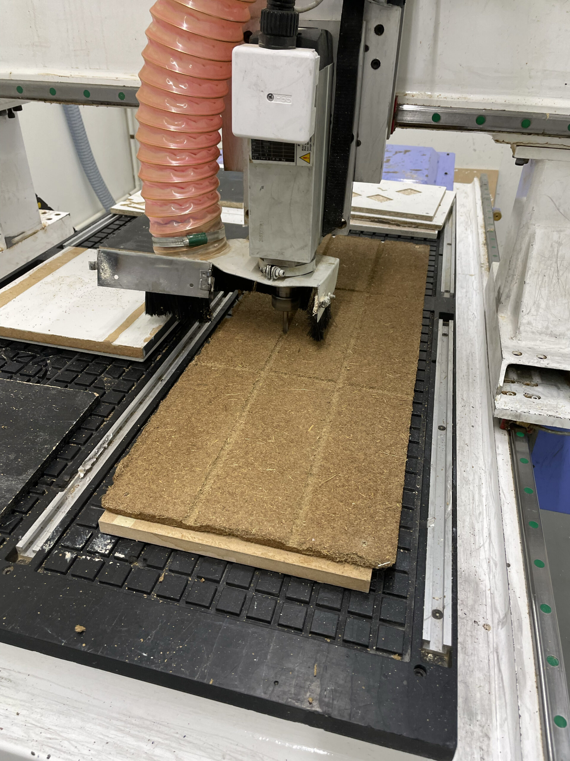 In terms of processing, GreenEdge can be milled, pigmented, and customised with embedded flowers, allowing for a broad range of aesthetic outcomes. The organic fibres create a distinctive, terrazzo-like appearance, while the mechanical performance remains comparable to that of conventional MDF, making it suitable for furniture and interior elements.