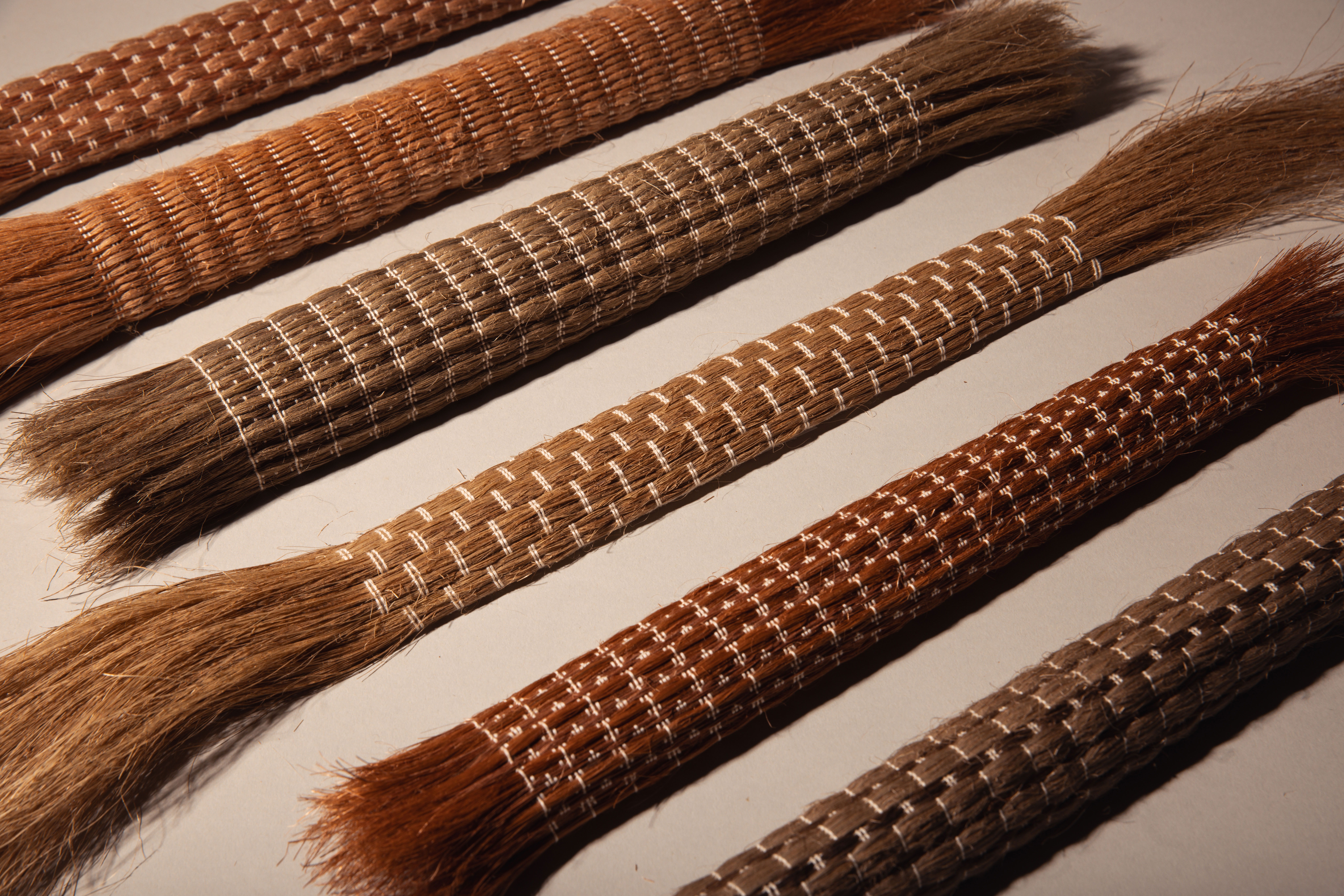 Visually and tactilely, the textiles are lustrous, organic, and irregular. Variations in fibre thickness, colour, and texture are embraced as part of the material’s identity, giving each piece a distinctive character that challenges the uniformity of industrial textiles.