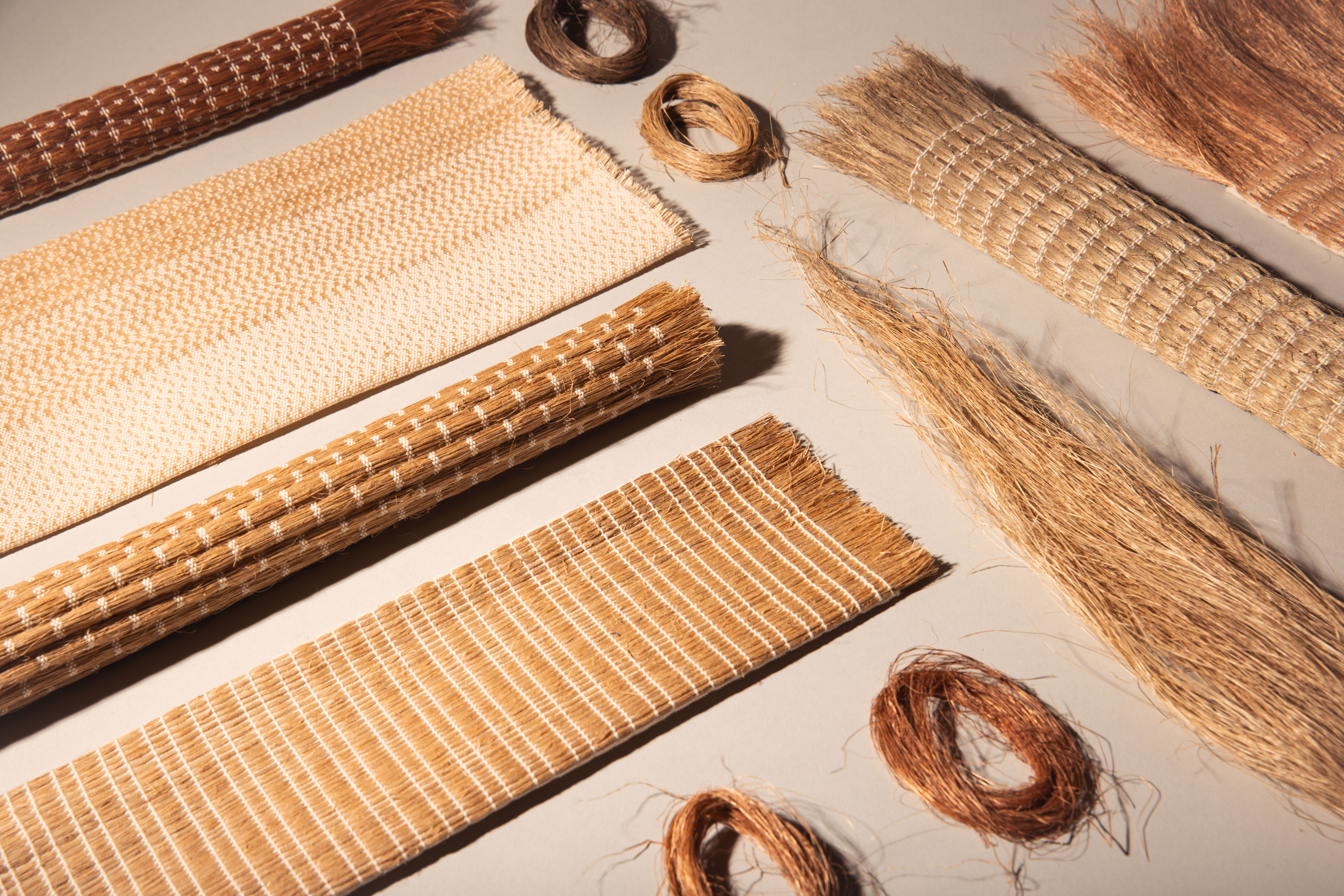 Technically, banana fibre is lightweight, flexible, water-resistant, buoyant, and highly tensile, qualities that historically made it suitable for ship ropes and ceremonial textiles. In these woven samples, those properties translate into materials that are resilient, breathable, and structurally expressive.