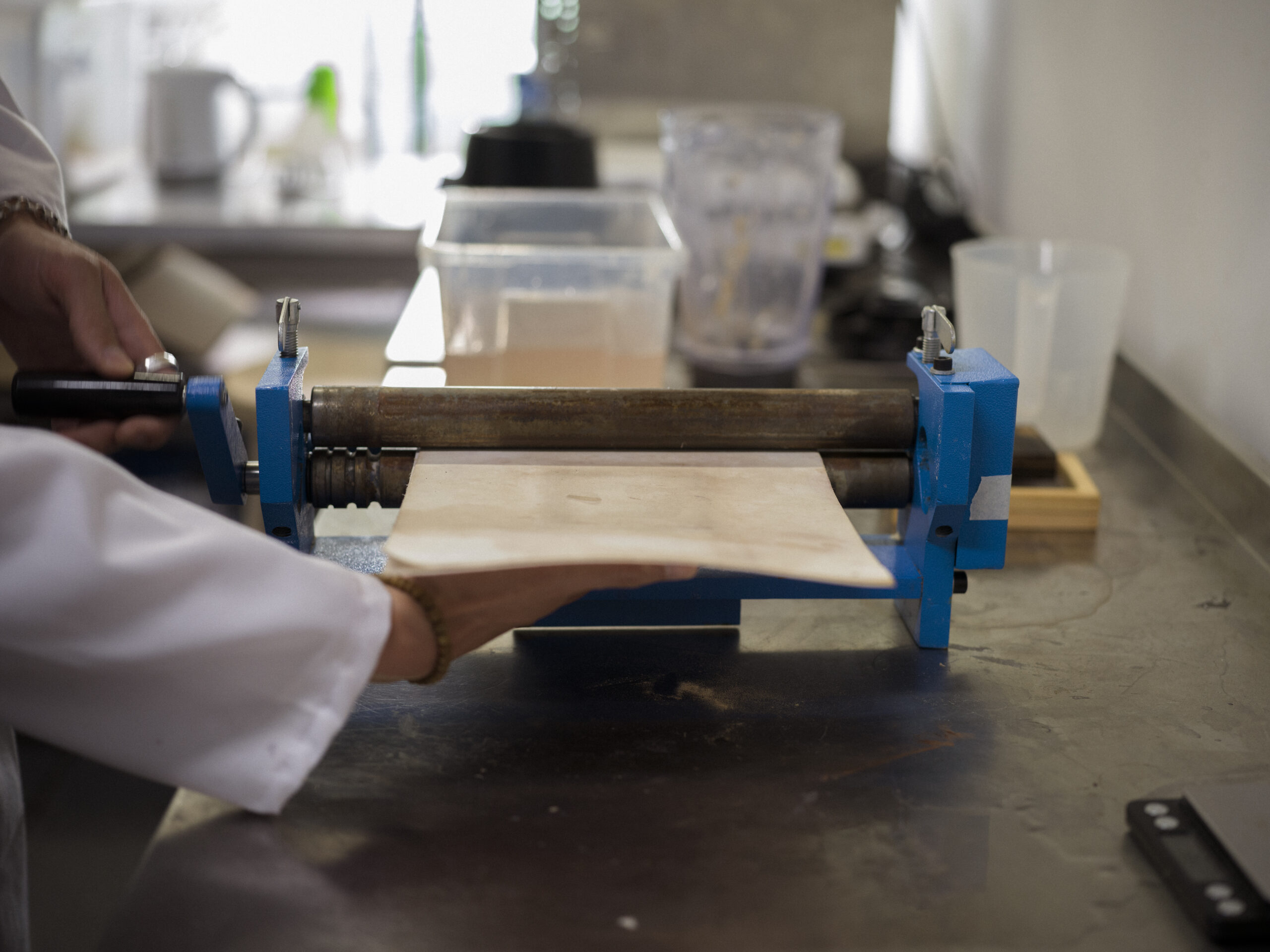 In the PulpaTronics process, selected areas of a paper substrate are exposed to laser radiation. This triggers a chemical transformation within the lignocellulosic fibres, rearranging carbon atoms into a graphene-like structure. The treated areas become electrically conductive, allowing the antenna circuitry to be formed directly within the paper without added metal components.