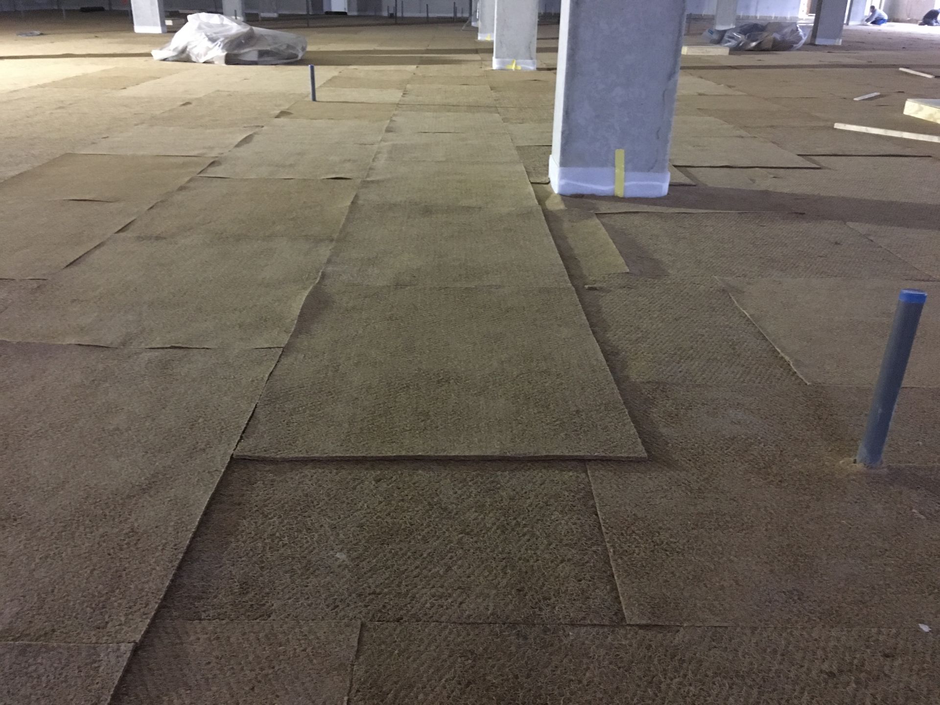 Thanks to its high natural resilience, Nevidek Kokos 300 is used in high-performance resiliently supported floors (floating floors) to reduce impact sound. In these applications, Nevidek Kokos 300 functions as the resilient layer and is covered with sheet materials or a wet-applied screed. Its dynamic stiffness is highly favourable compared to mineral wool or crushed polystyrene, which are commonly used in the construction industry. In addition, Nevidek Kokos 300 can withstand high loads of up to 2,000 kg/m², making it suitable for demanding applications such as supermarkets.