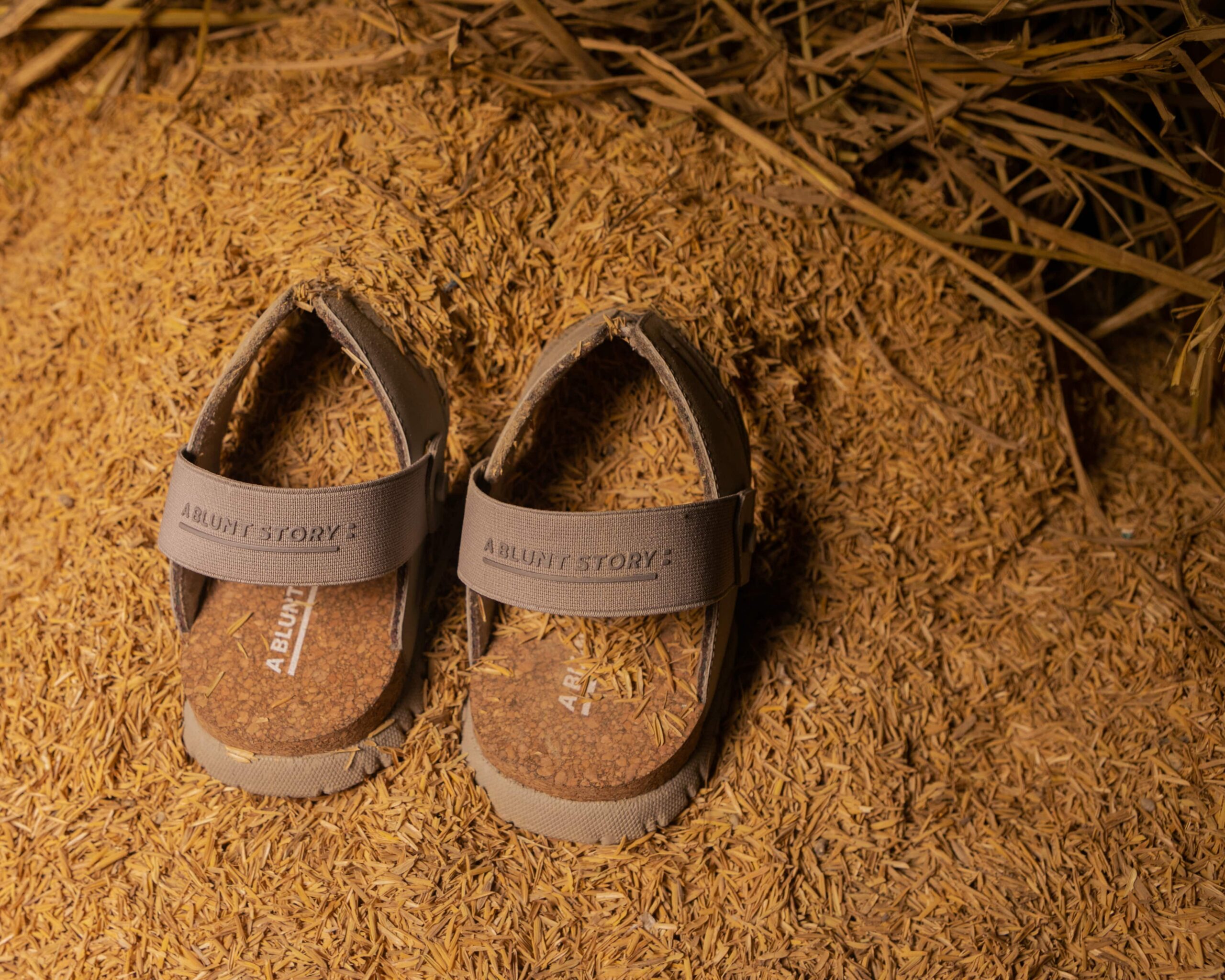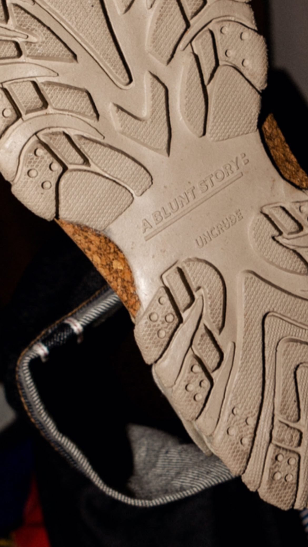 A BLUNT STORY has developed UNCRUDE®, a proprietary sole technology designed to reduce the environmental impact of footwear. Conventional footwear soles are typically made from petroleum-derived materials such as EVA, TPU and synthetic rubbers. These materials can shed microplastics during use and persist in the environment for extended periods after disposal.