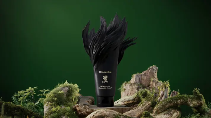 UPM Circular Renewable Black™ is a biobased black pigment developed by UPM Biochemicals for applications in plastics and rubber, particularly in packaging. The material is derived from lignin, a natural polymer found in wood, and is sourced from FSC™ and PEFC-certified forests. Produced in Europe using renewable carbon, it offers an alternative to fossil-based carbon black without requiring changes to existing manufacturing processes.